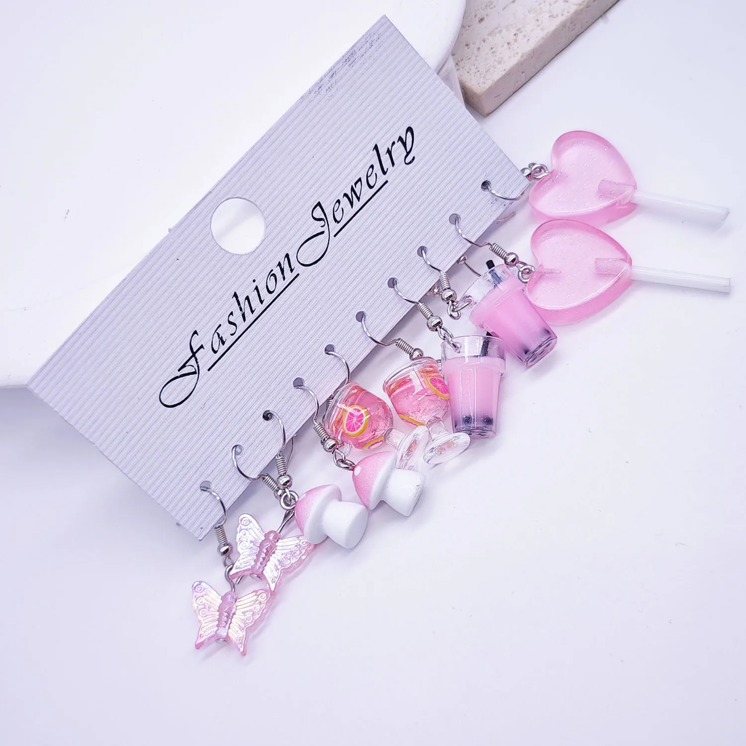 European and American cross-border cartoon fashion resin simulation food, milk tea, mushroom candy earrings, pink set