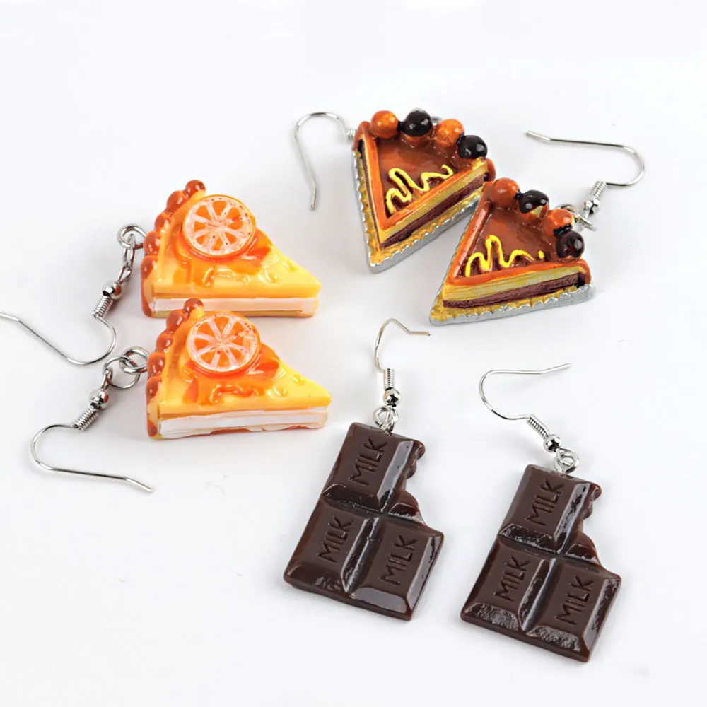 Fashion Cute Funny Chocolate Cake Drop Earrings For Women Girl Geometric Food Shape Donuts Cookies Dangle Earrings Party Jewelry
