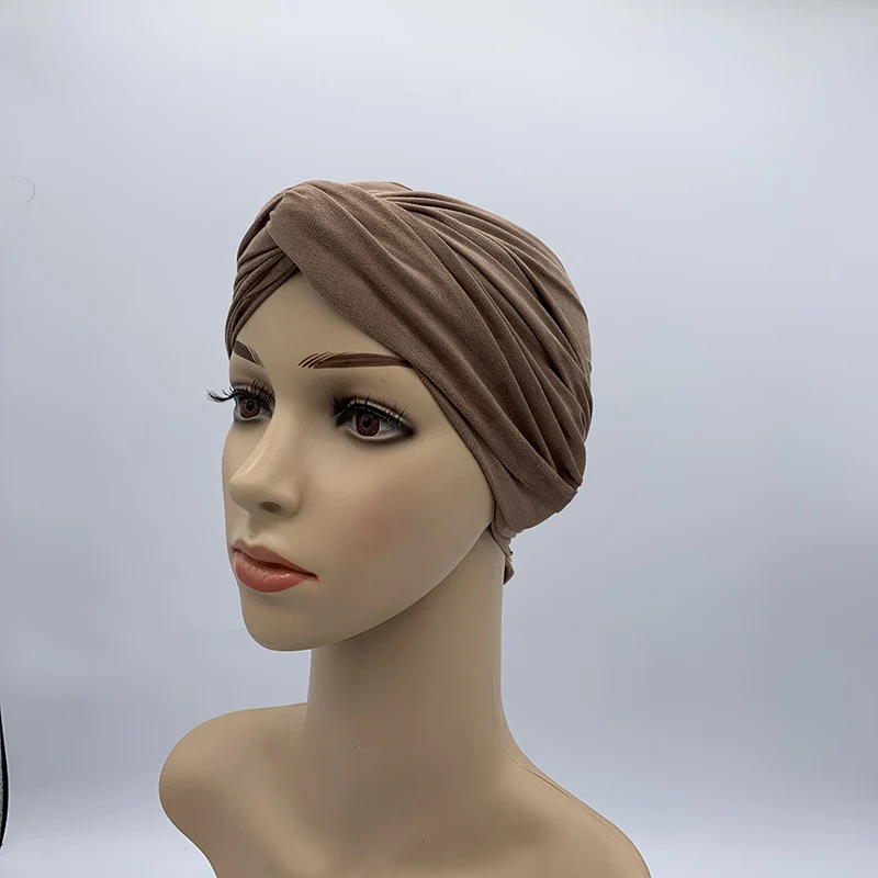 Fashion Women Cross Twist Suede Turban Caps Soild Color Female Headscarf Bonnet Muslim Hijab Cap Islamic Under Scarf India Hat