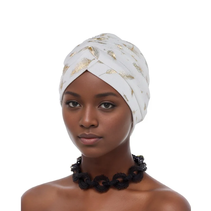 Introducing the Feather Gold Stamping Turban Cap - a beautifully designed headwear accessory for women that combines elegance, comfort, and cultural heritage. Crafted for versatility, this stunning turban cap is perfect for everyday wear, special occasions, and everything in between. With its unique gold feather stamping, it adds a touch of luxury to any outfit.