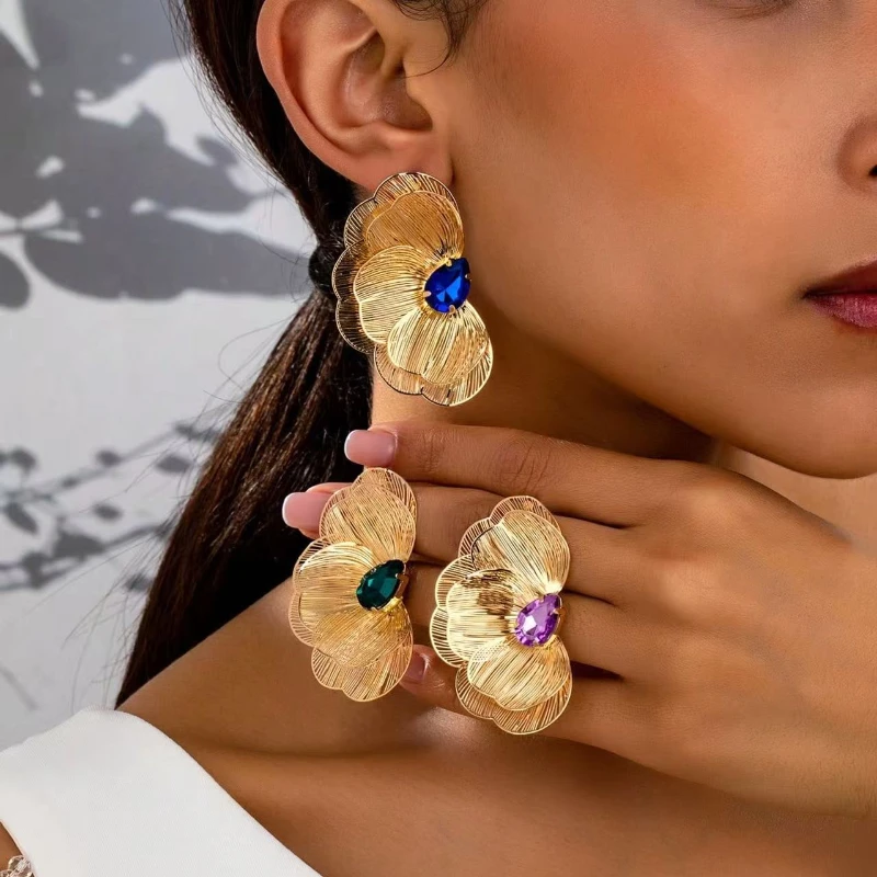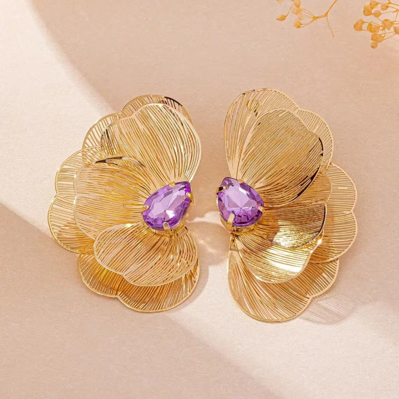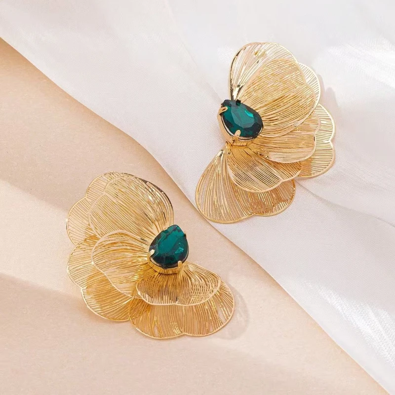 Flower Petal Stud Earrings For Women Girls Temperament Geometric Ear Accessories Party Gift Holiday Fashion Jewelry BE593