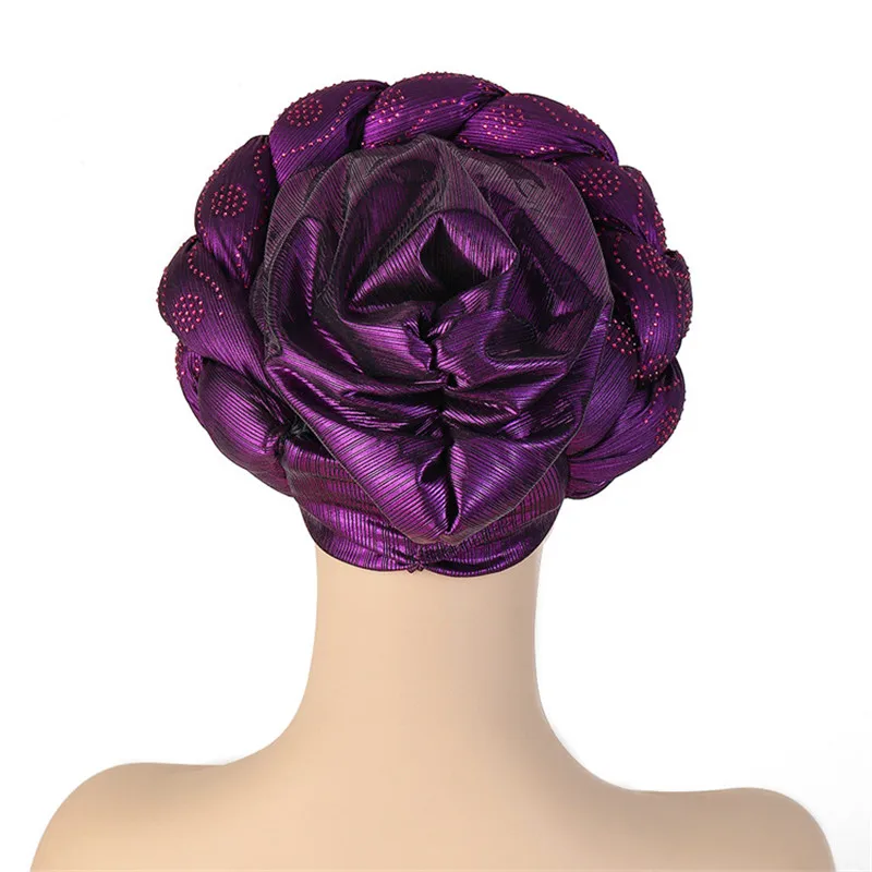 Glitter Diamonds Head Wrap for Women - African Autogele Turban Cap and Braids Headtie