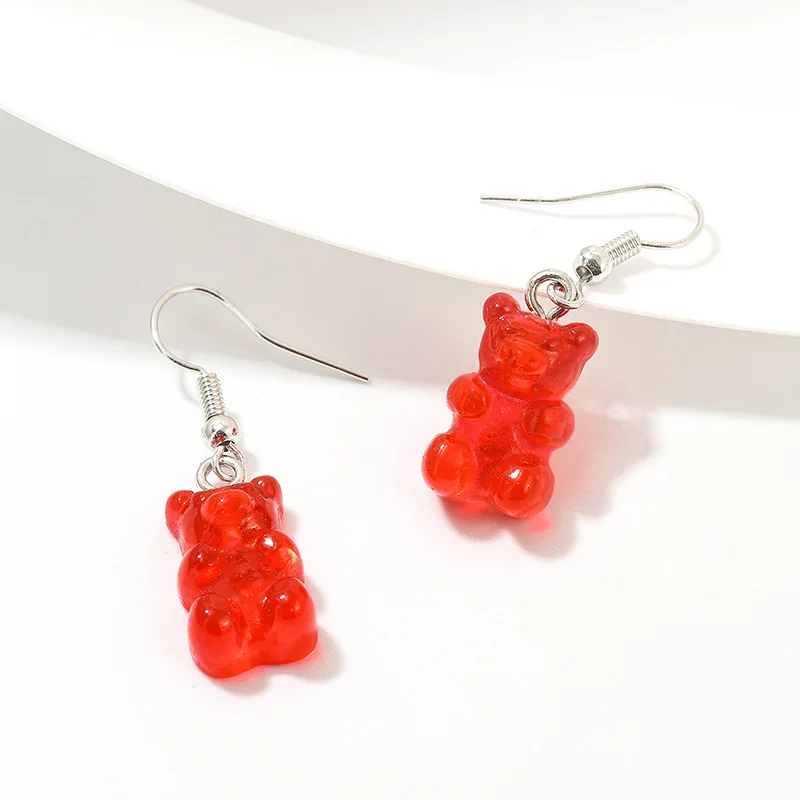Gradient Candy Color Cute Acrylic Bear Dangle Earrings for Women Girls Gift Korean Fashion Animal Hook Earring Female Jewelry