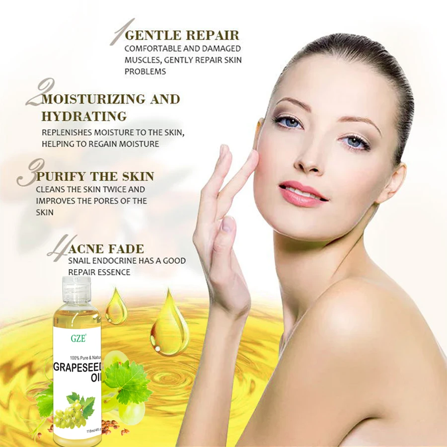 GZE Grapeseed Oil, Skin Care for Sensitive Skin, Light Silky Moisturizer for All Skin Type, Hair Strengthens Vegan Thickening