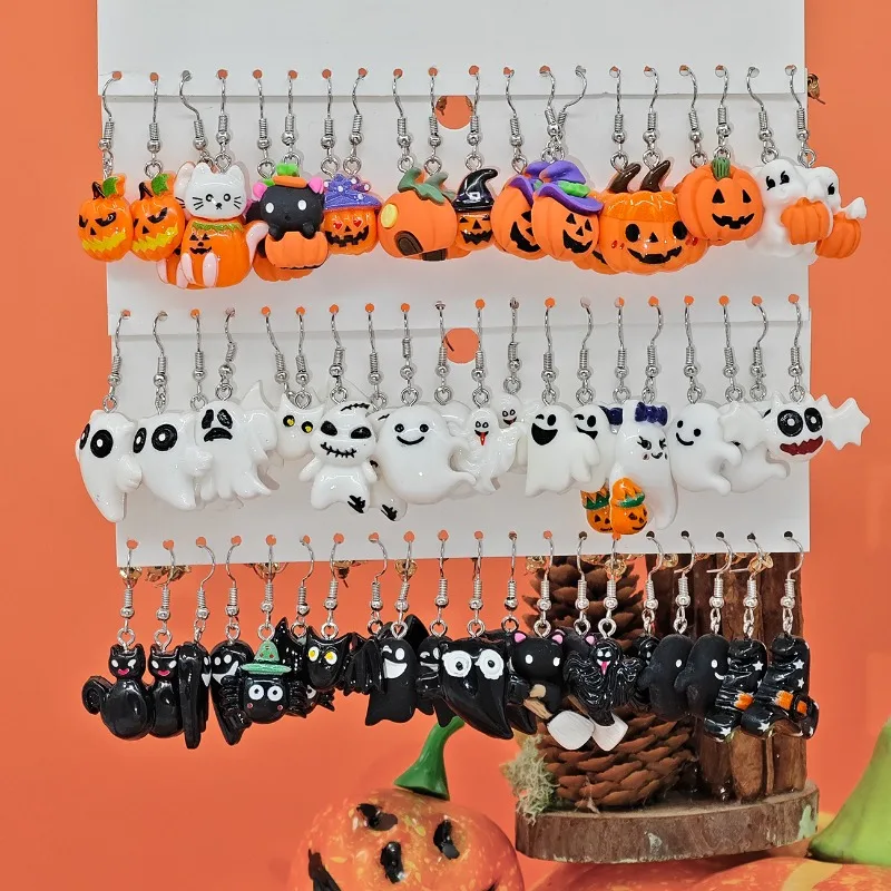 Halloween Resin Earrings Fun Creative Simulation Pumpkin Ghost Demon Clown Earrings Set