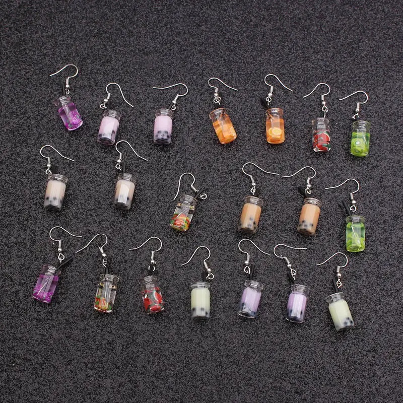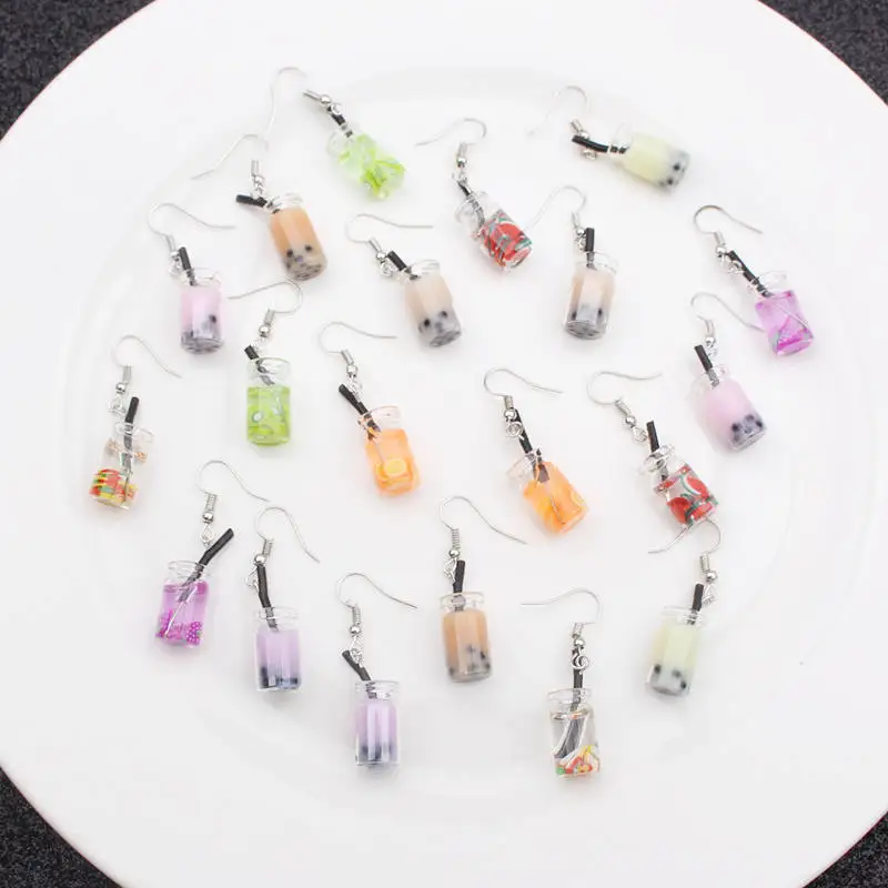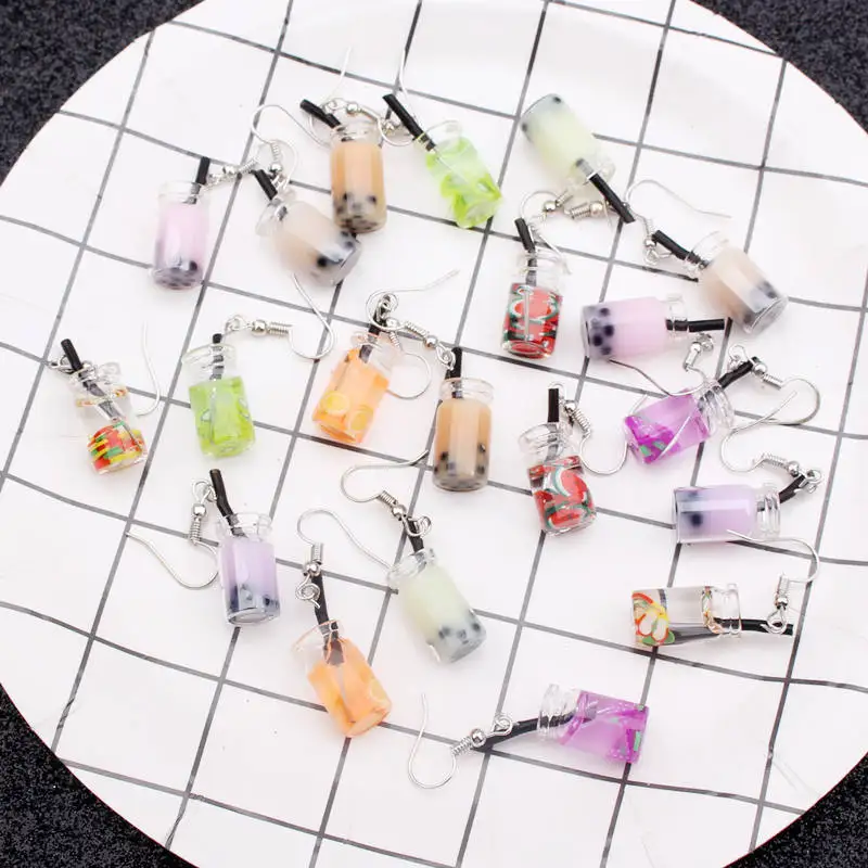 Hot Creative Unique Bubble Tea Drop Earrings for Women Personality Milk Drink Funny Party Ear Jewelry Girl Gift