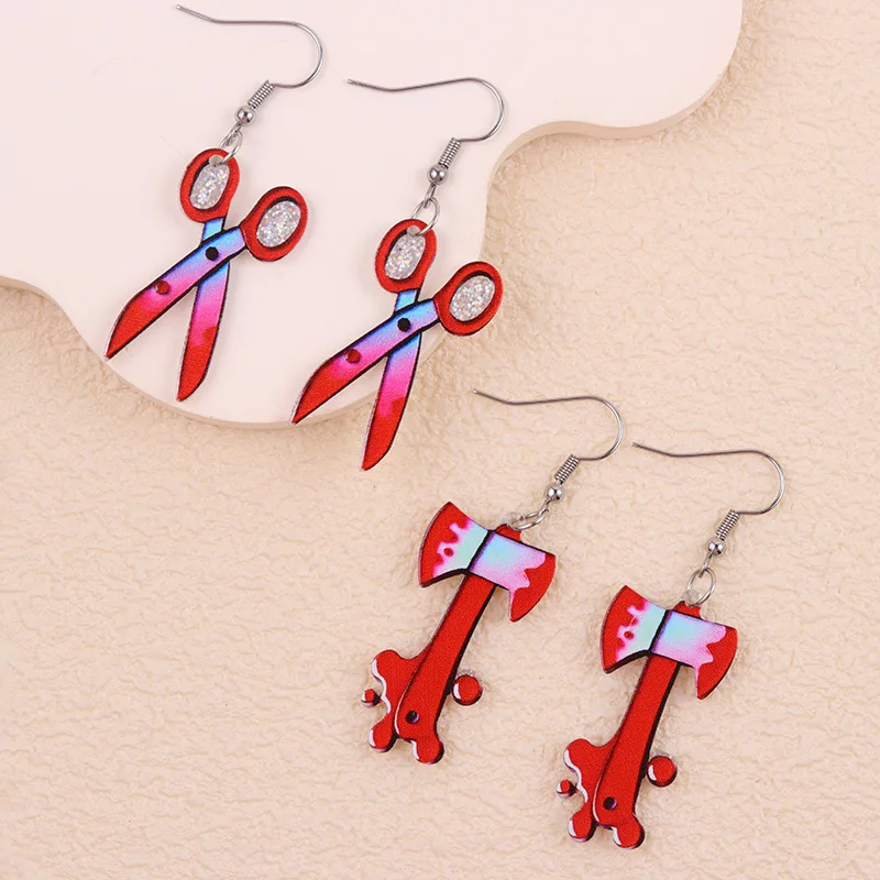 Hot selling Halloween earrings bloody scissors axes acrylic earrings personalized trend earrings for women
