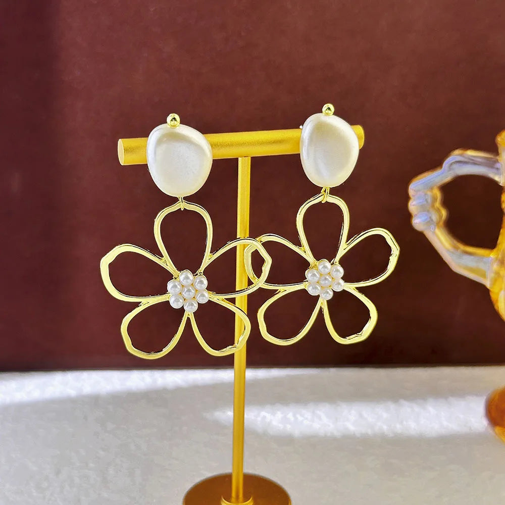 Korean Fashion Earrings Exquisite Dangle Earrings White Crystal Zirconia Flower Bridal Earring Party Jewelry for Women Aretes