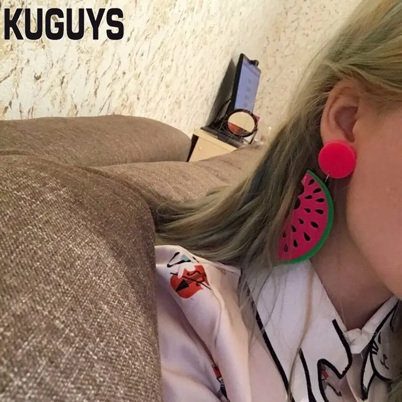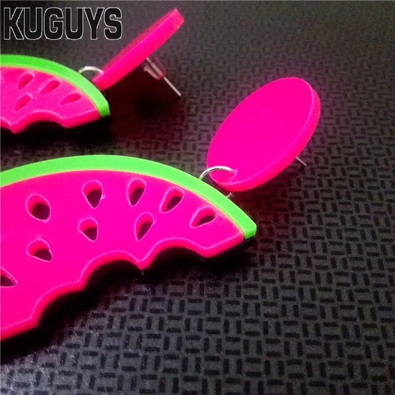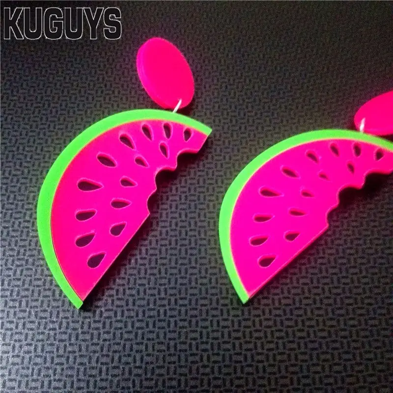 KUGUYS Fashion Women Acrylic Watermelon Drop Earrings Summer Jewelry Lovely Gift Music Festival Party Accessories