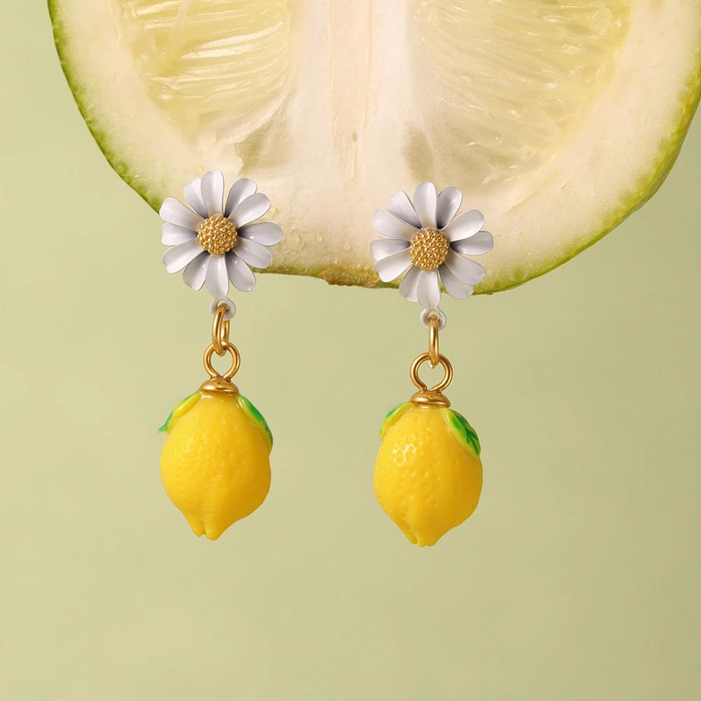 Liora eye-catching Fruit Lemon Drop Earrings for Women Stainless Steel Zircon Hypoallergenic Stud Earrings Jewelry Wedding Gifts