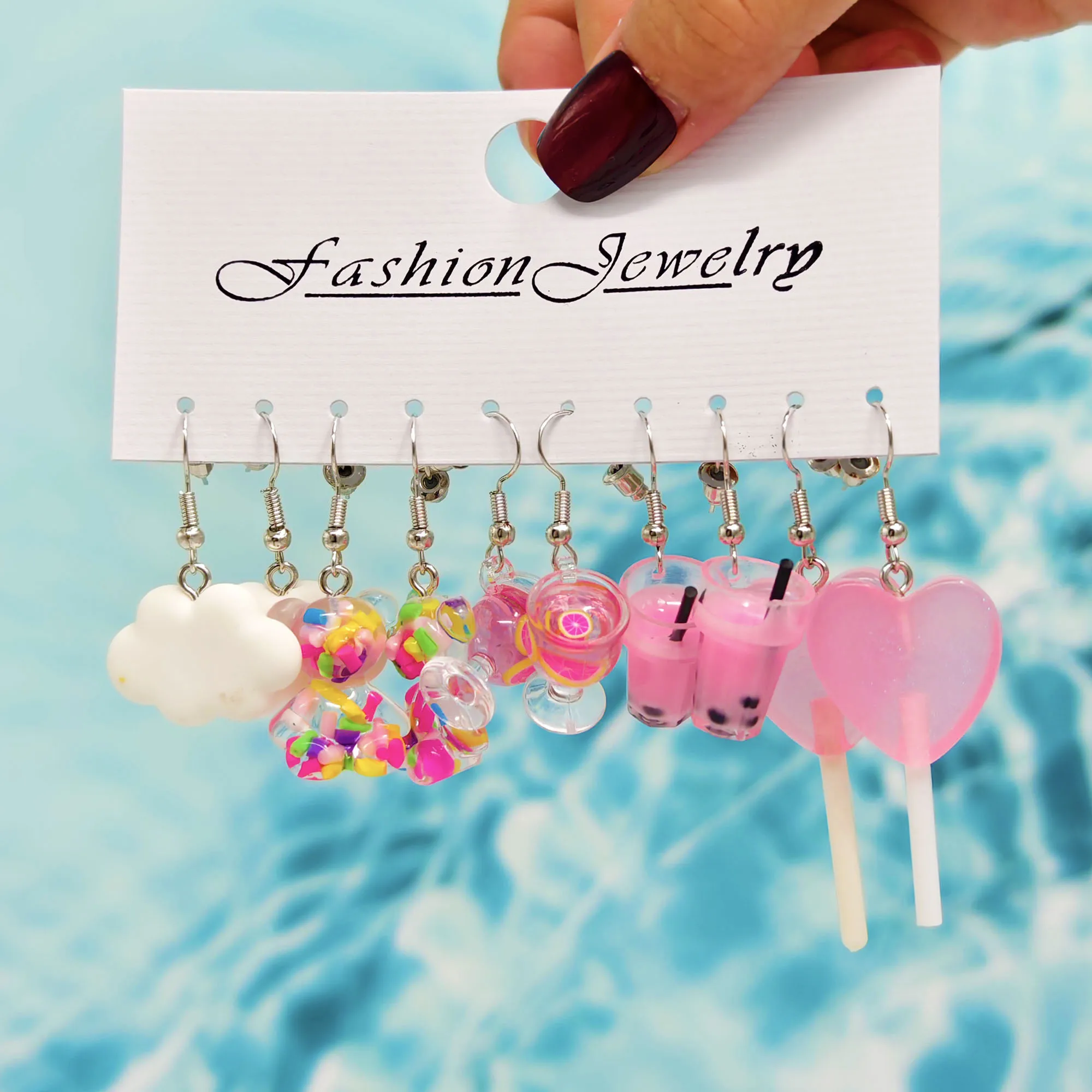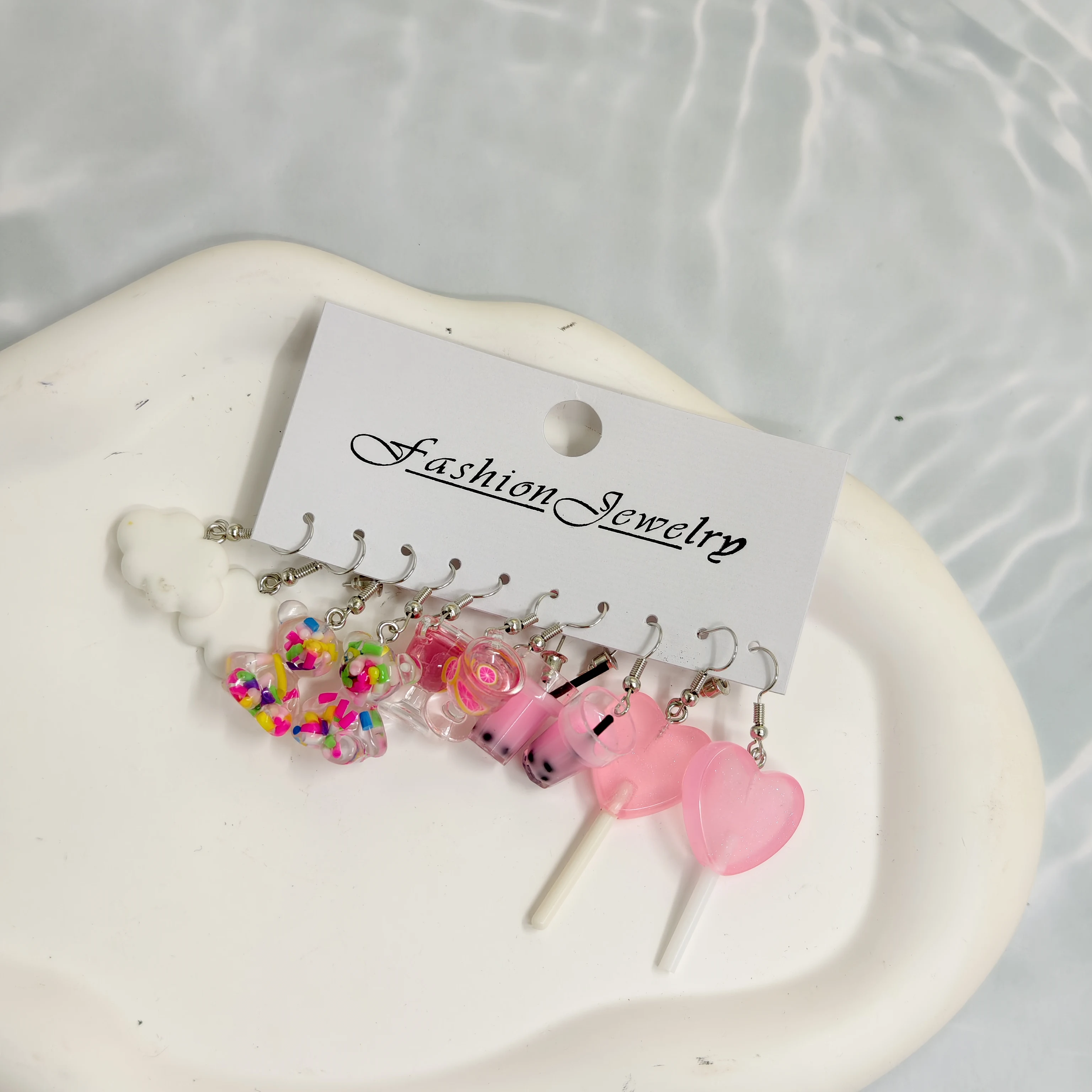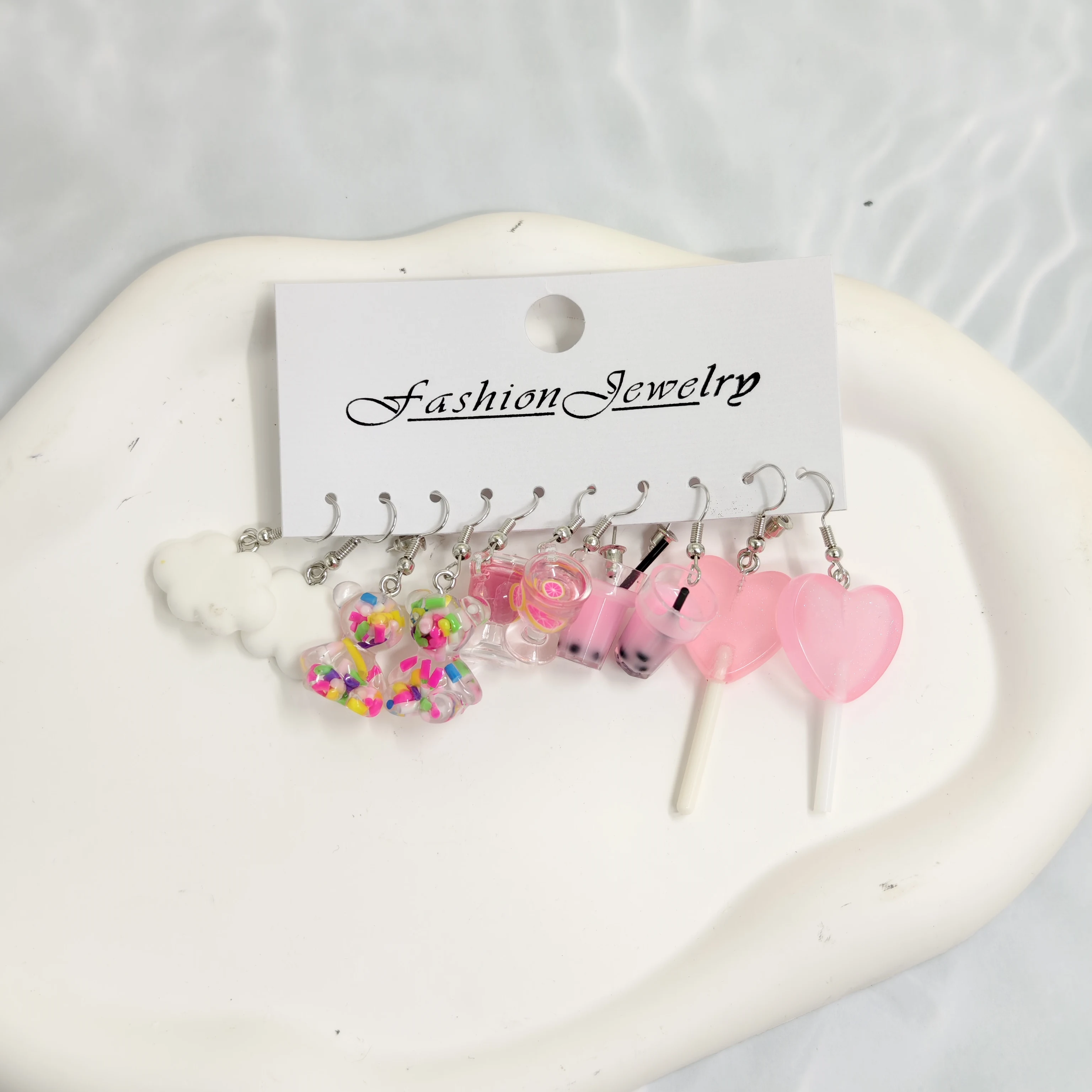 Little Bear High footed Cup White Cloud Earrings, Resin Simulation Food Candy Earrings Set