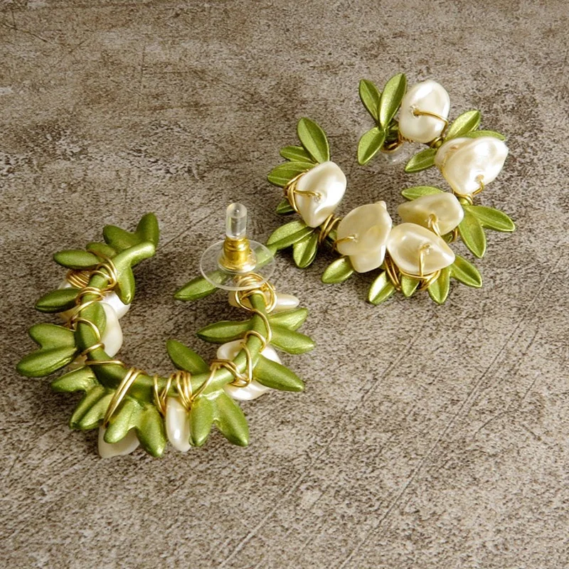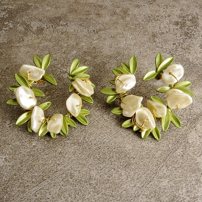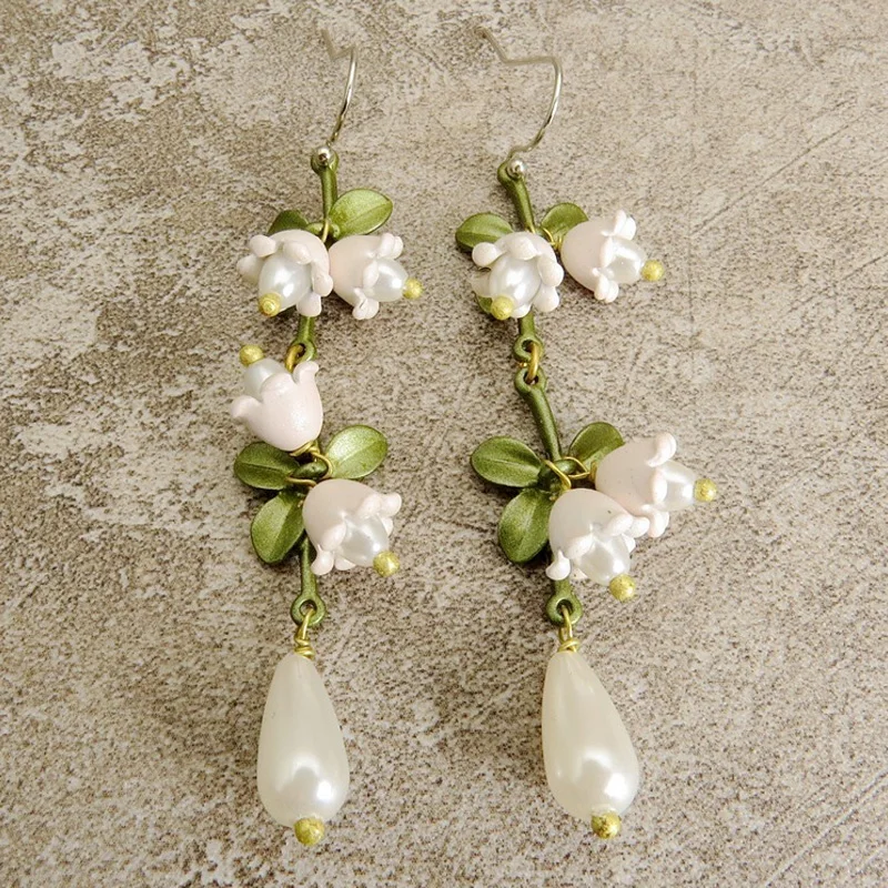 Luxury Orange Lily Of The Valley Earrings Vintage Pearl Plant Flower Earring Party Gift