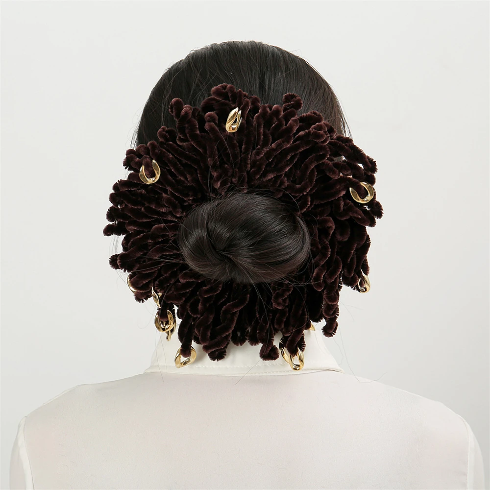 Muslim Women Fashion Scrunchies Velvet Elastic Hair Bands Hair Ring Tie Bun Clip Large Size Knitting Hair Ponytail Bun Holder