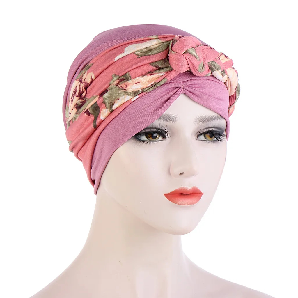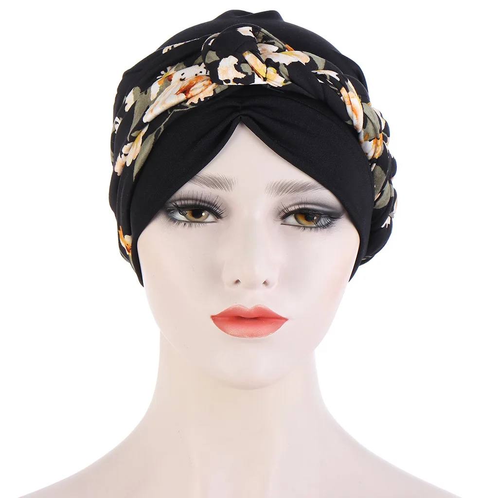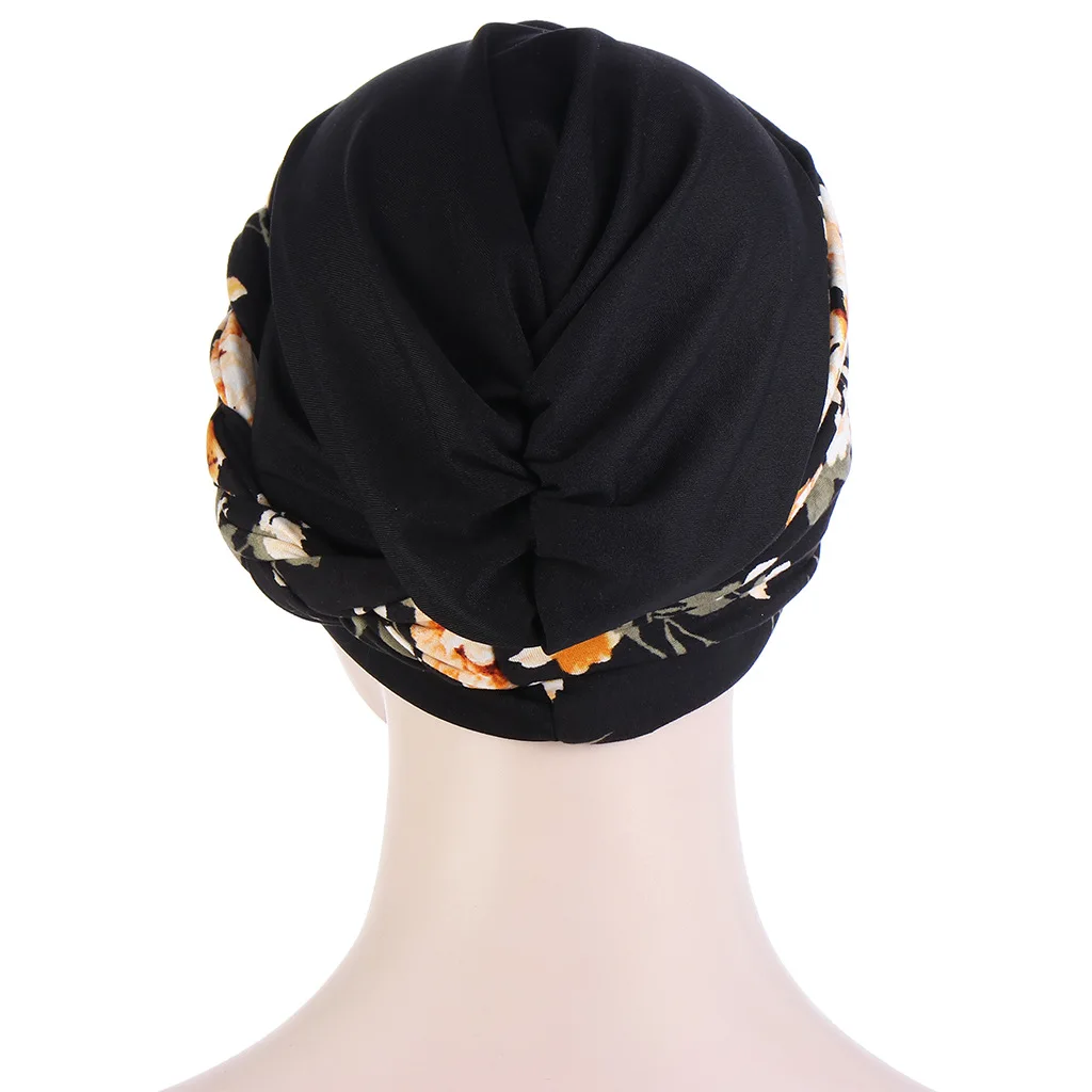 Muslim Women Twist Braid Turban Hats Pre Tied Headscarf Print Flower Hijabs Bandana Chemo Beanies Caps Cover