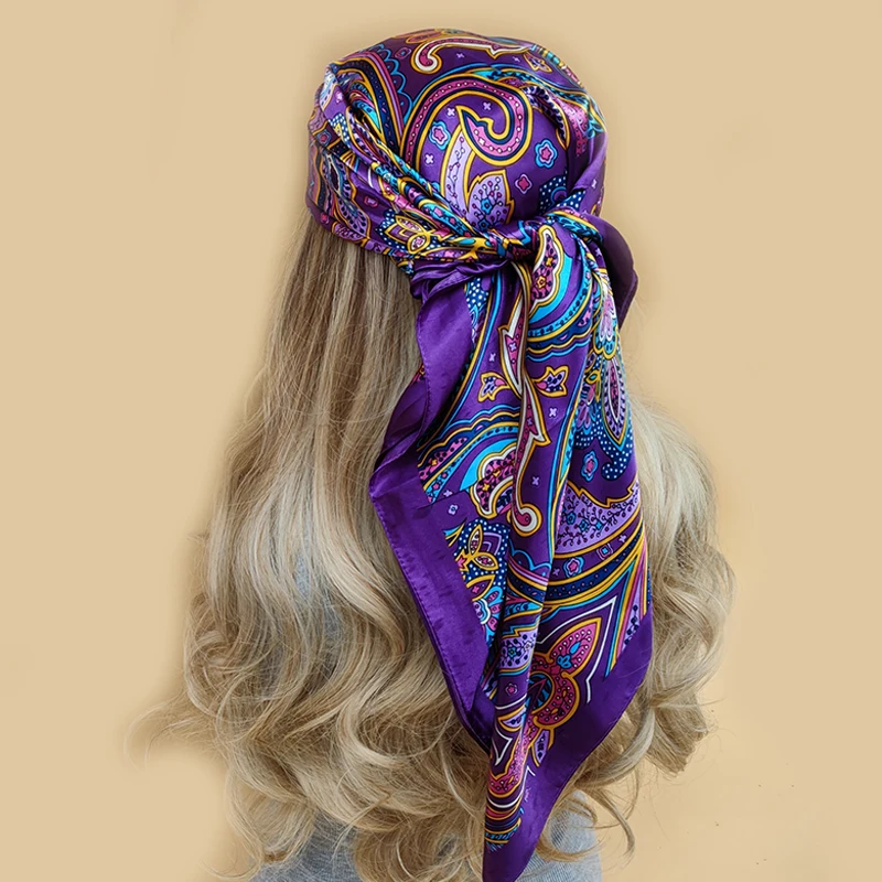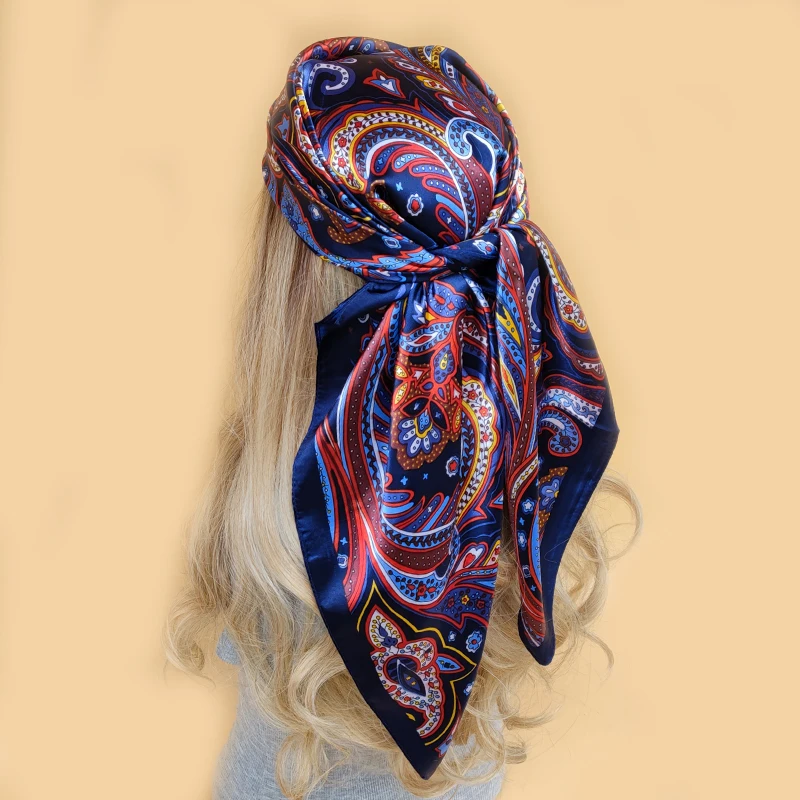 New 90*90cm Retro Brand Women Silk Scarf Bandanna Fashion Bohemian Pattern Square Hijab Lady Wrap Headband foulard muffler