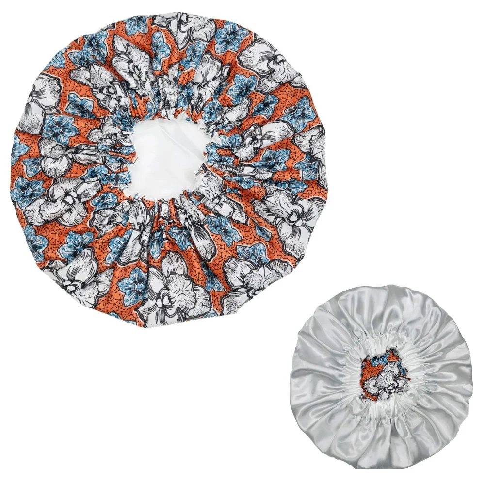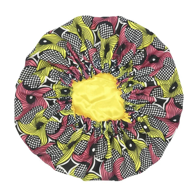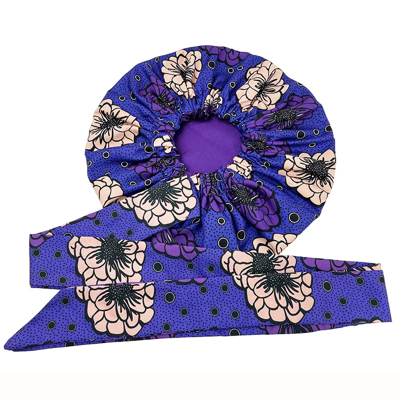 New African Ankara Pattern Satin Linned Bonnet Women Long Ribbon Headwrap Double Layer Headscarf Big Size Adult Hair Cover