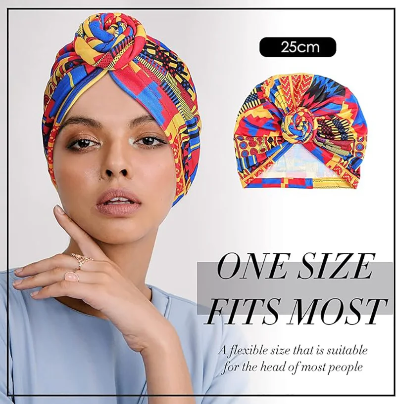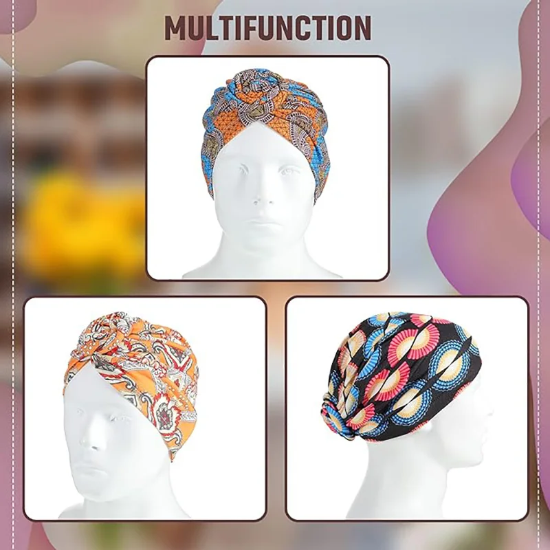 New African Print Pleated Turban Floral Beanie Knot Flower India Head Wrap Elegant Women Chemo Cap Bandana Headwear Head Cover