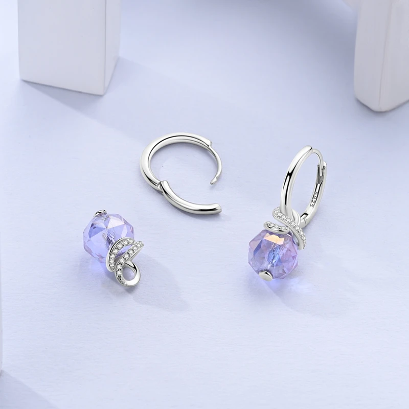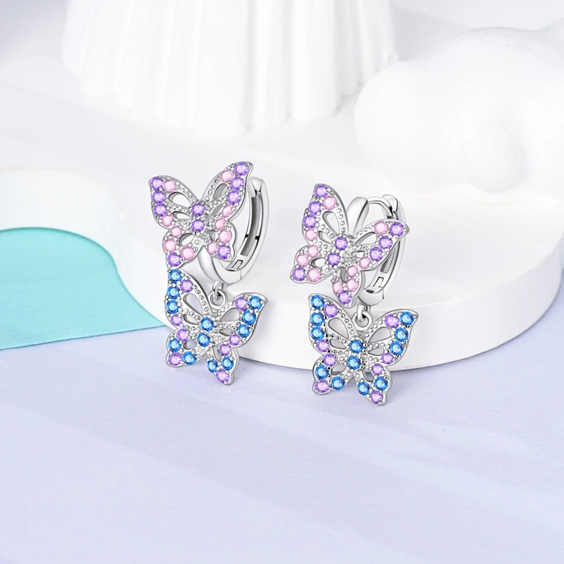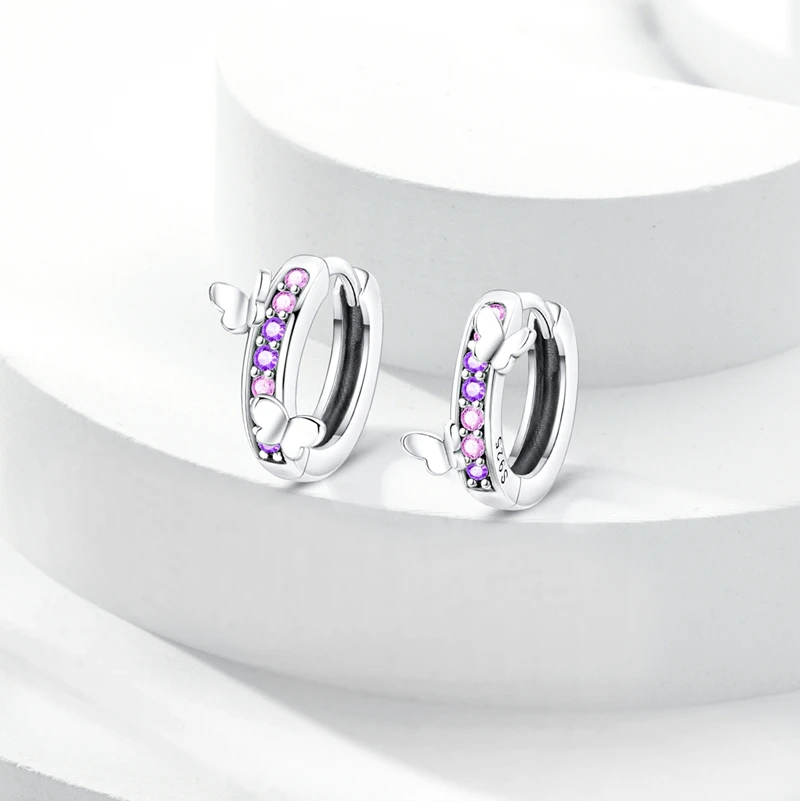New Original 925 Sterling Silver Hoop Earrings Purple Zircon Flowers Butterflies Studs Earring For Women Wedding Engagement Gift