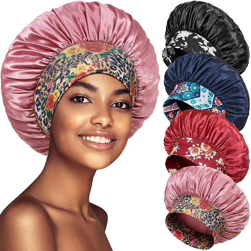 New Women's Satin Solid Sleeping Hat Night Sleep Hair Care Bonnet Nightcap Silky Shower Caps Comfortable Flower Band Unisex Cap