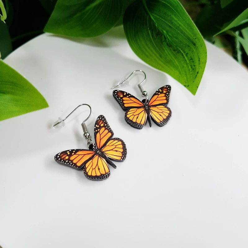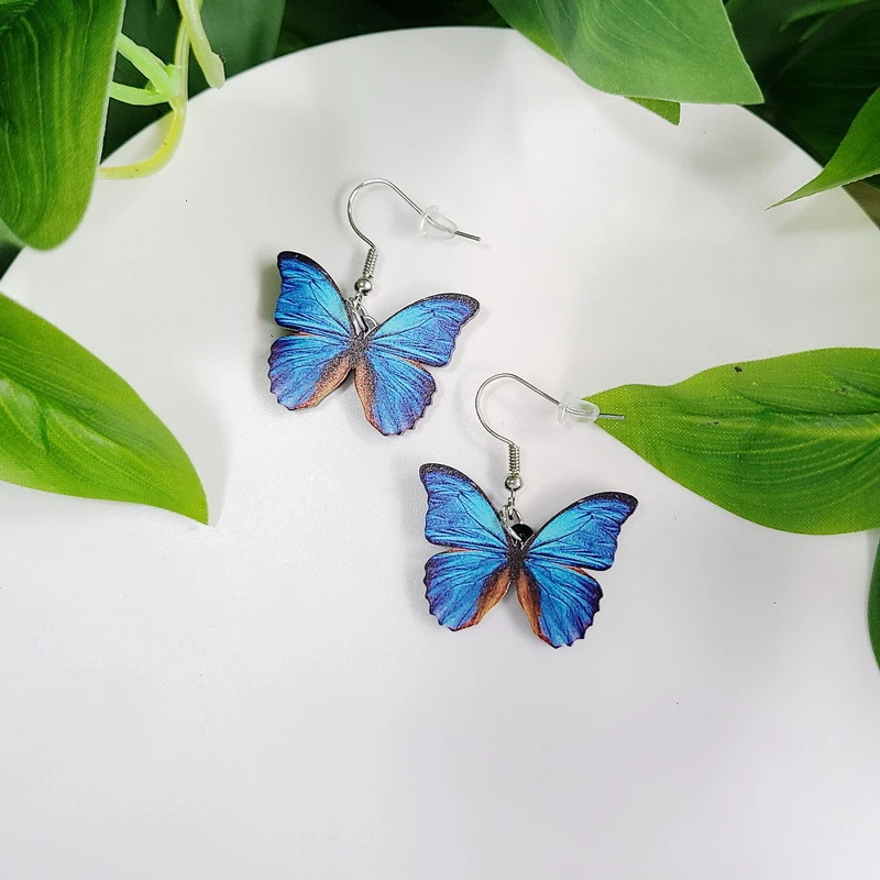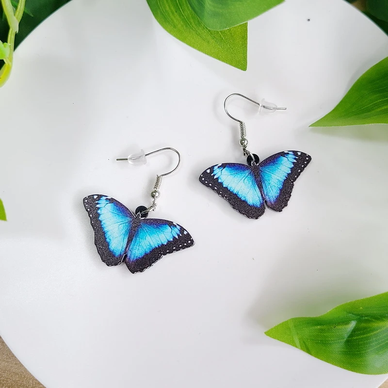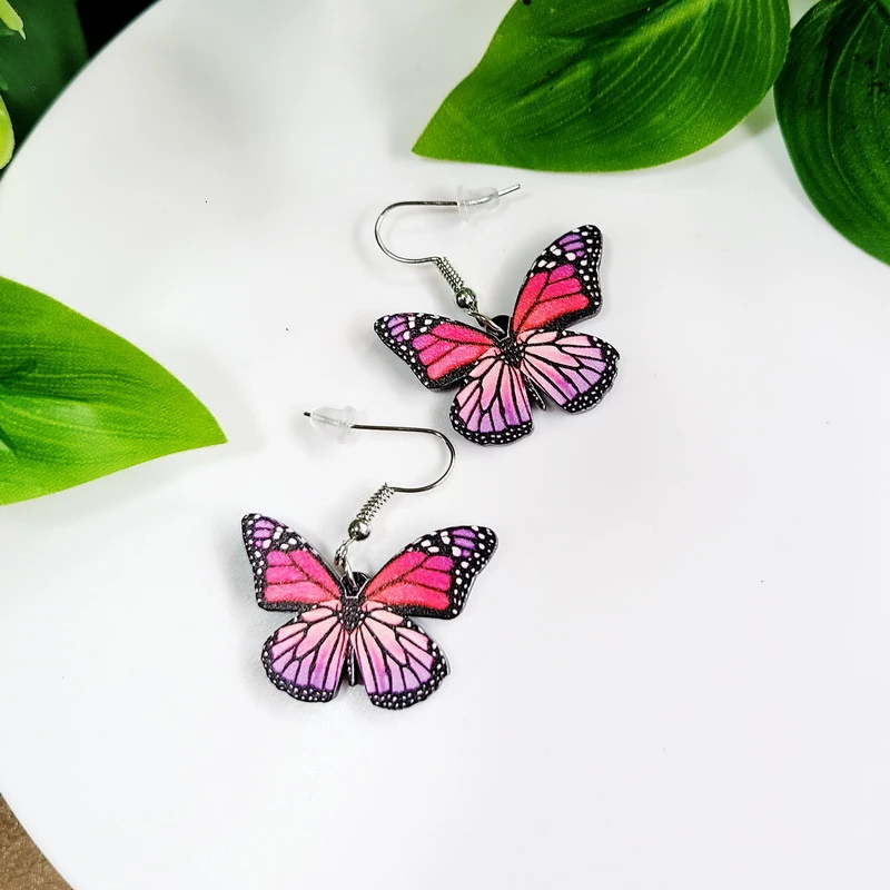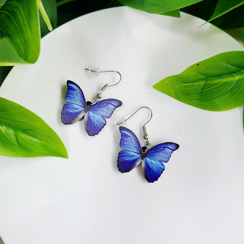 Party Unusual Acrylic Colors Butterfly Moth Hanging Pendants Earrings For Women Girls Cute Gradient Colorful Insect Jewelry Gift