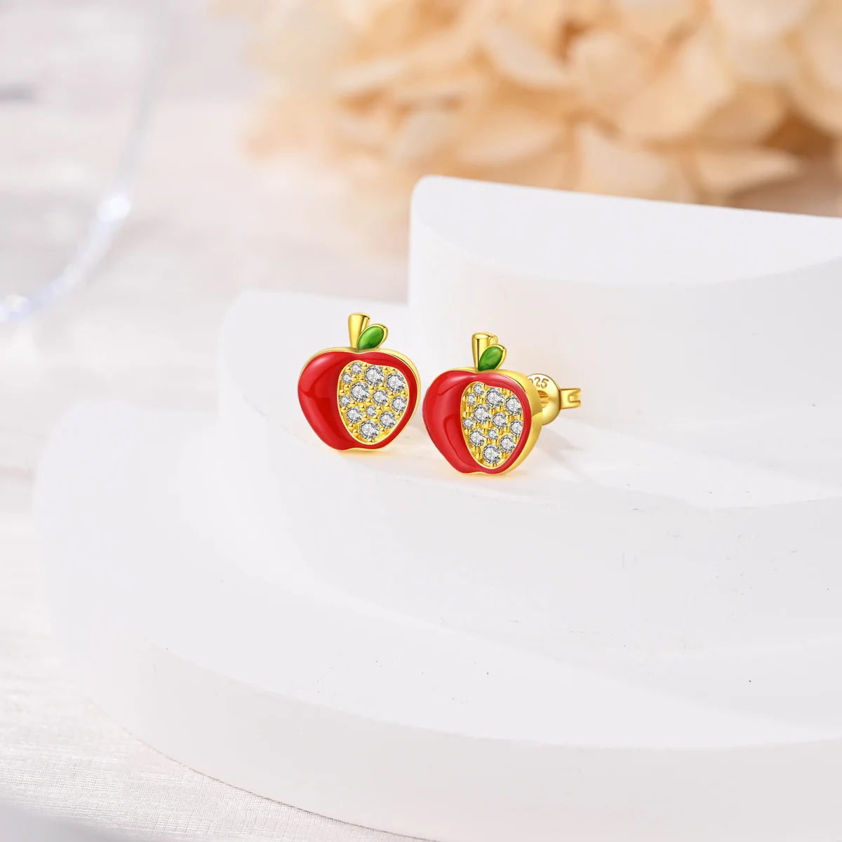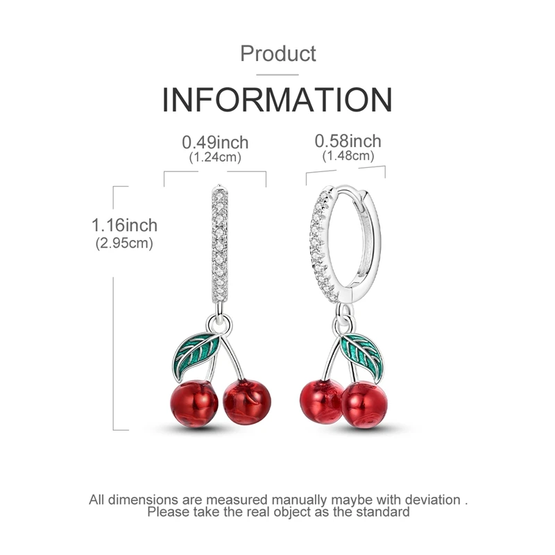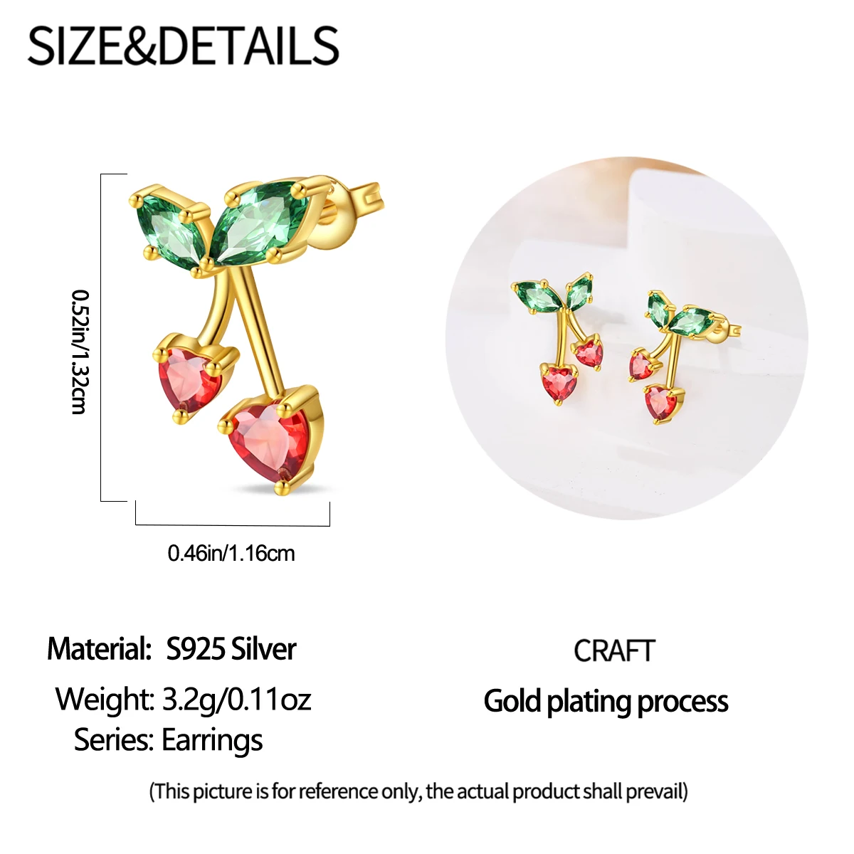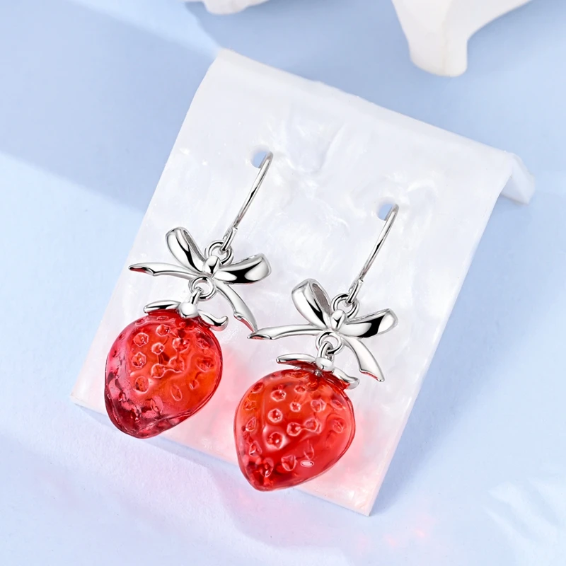 romantic 925 Sterling Silver Strawberry Rose Cherry Apple Wine Glass Red Earrings Colorful And Exquisite Niche Gifts