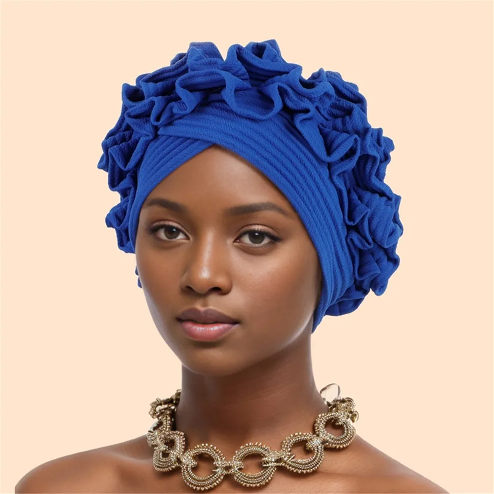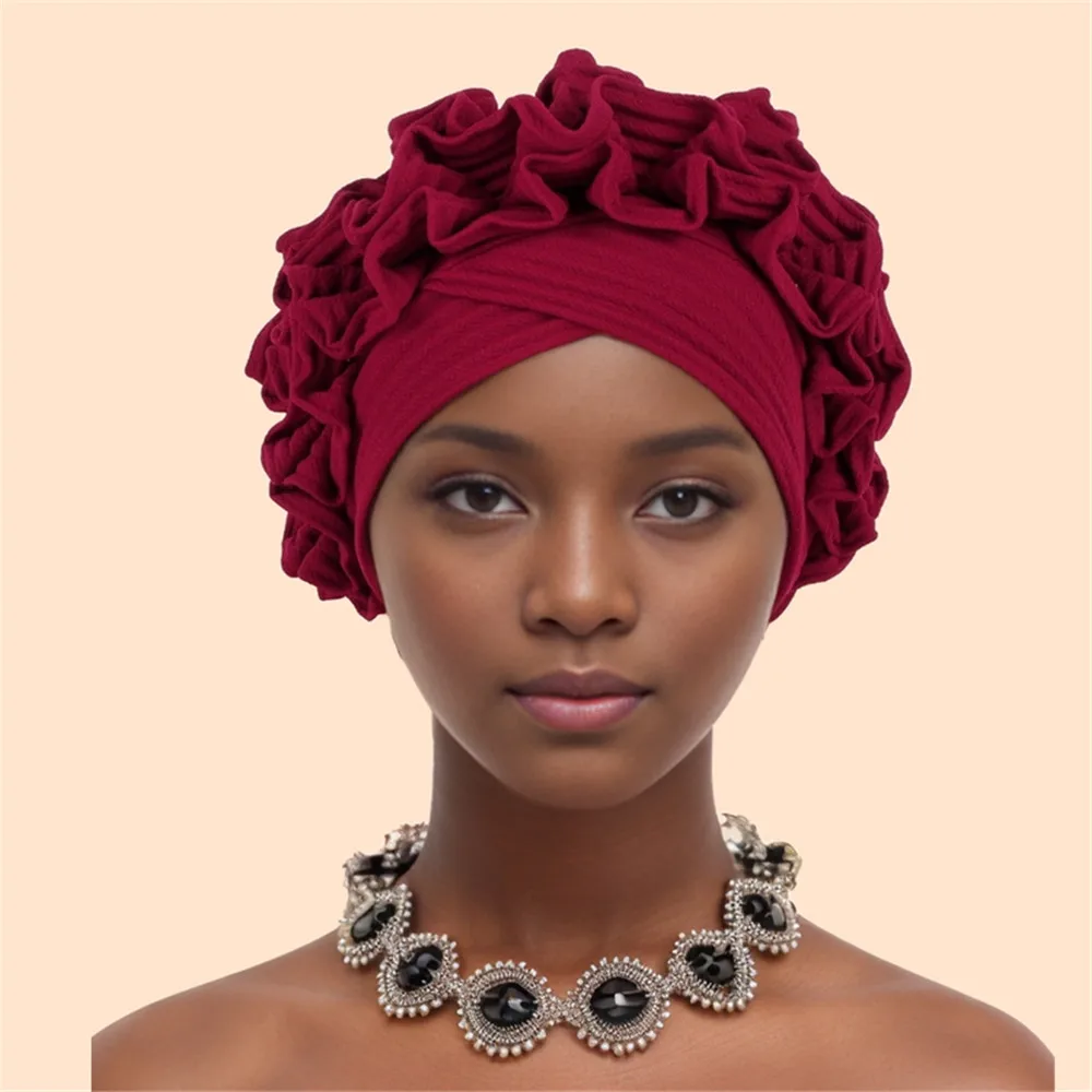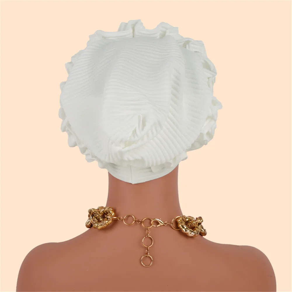 Ruffled Turban Cap Women's Head Wraps Soft Comfortable Headscarf Bonnet Lady Soild Color Headgear