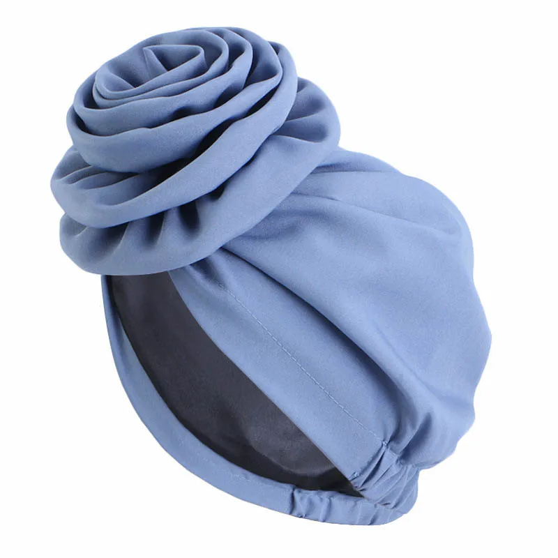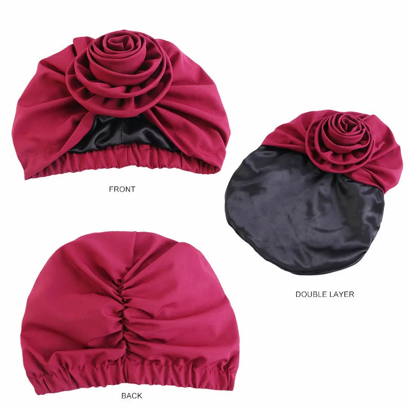 Satin Lined Turban Cap with Big Flower | African Hat & Headwrap for Women