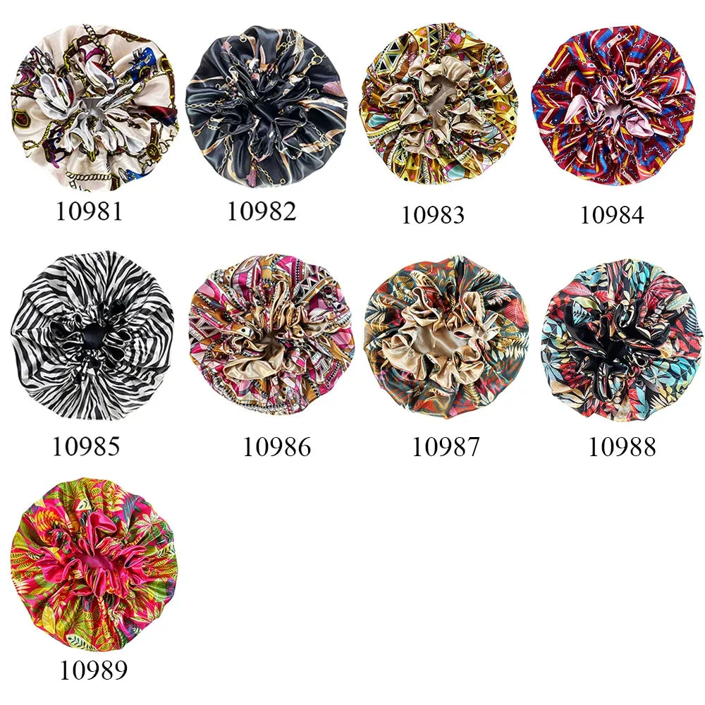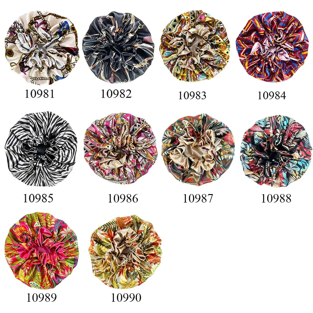Silky Satin Bonnet Women Sleeping Cap Large Reversible Satin Linned Night Sleep Headwrap Hat Hair Wrap Accessories