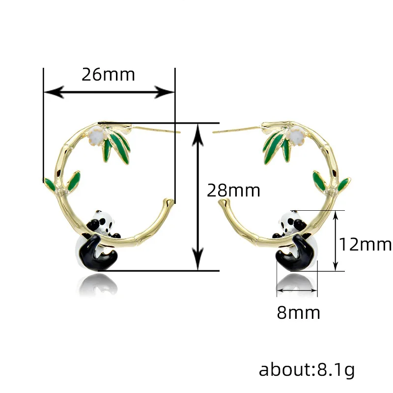 Small niche luxury panda bamboo ear rings, grand and eye-catching, slim and dripping oil earrings for women