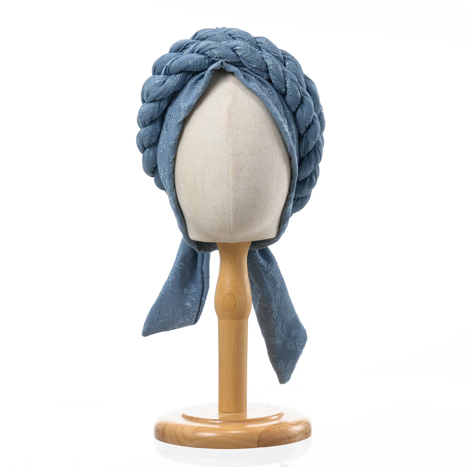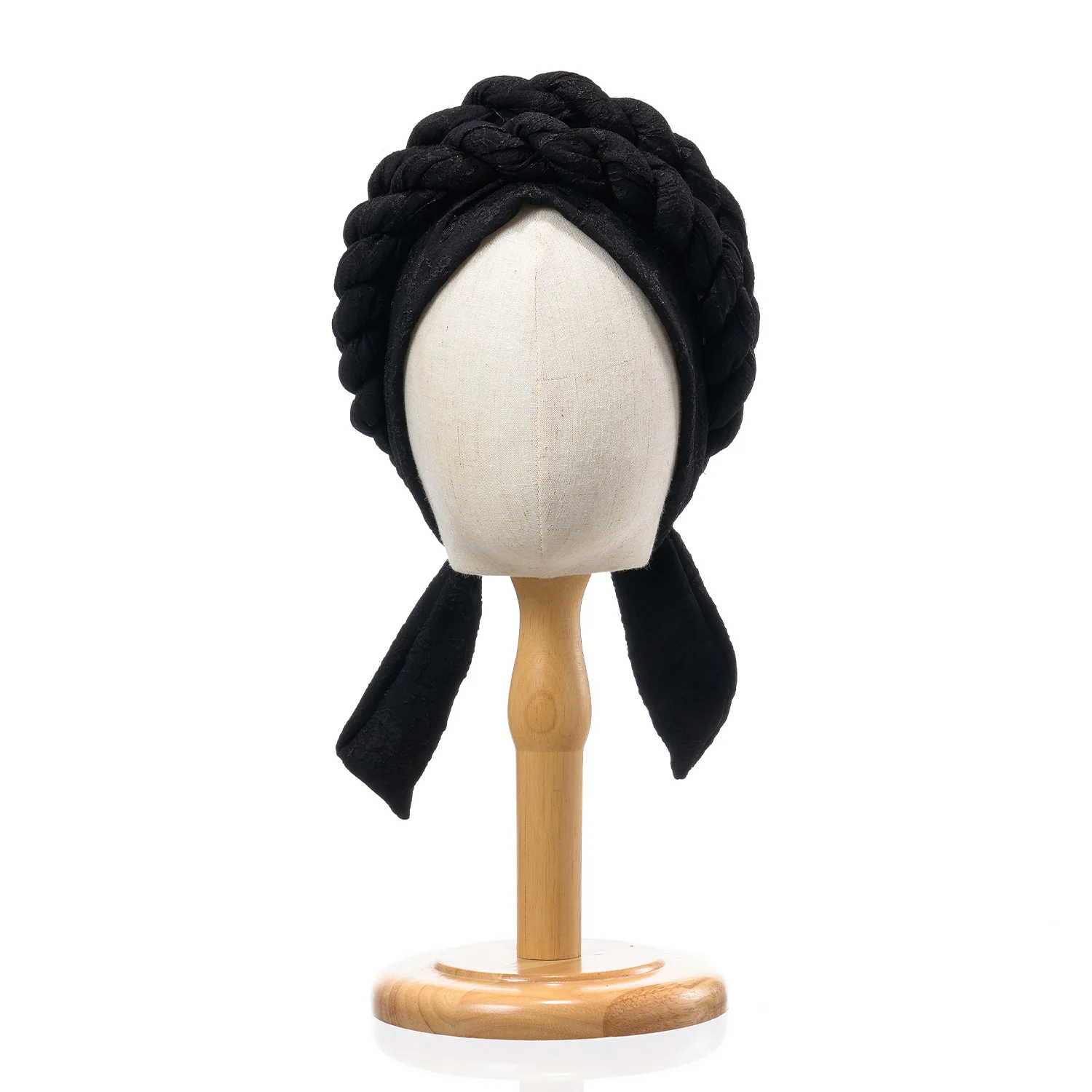 Solid Color Double Braids Turban Caps for Women Fashion Women Muslim Wrap Head Bonnet Headwear Braid Hat Turbante Mujer