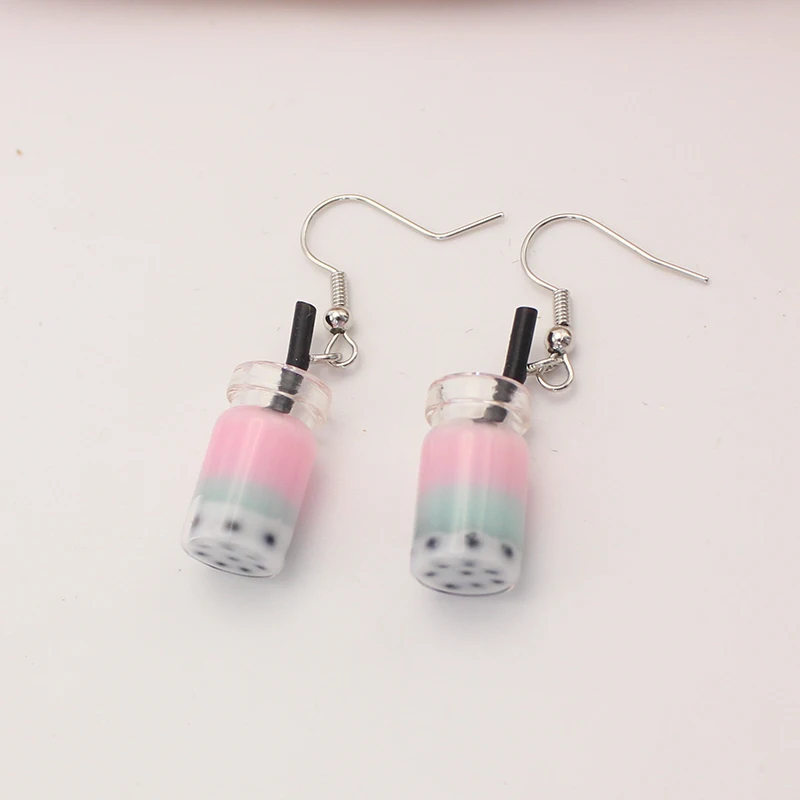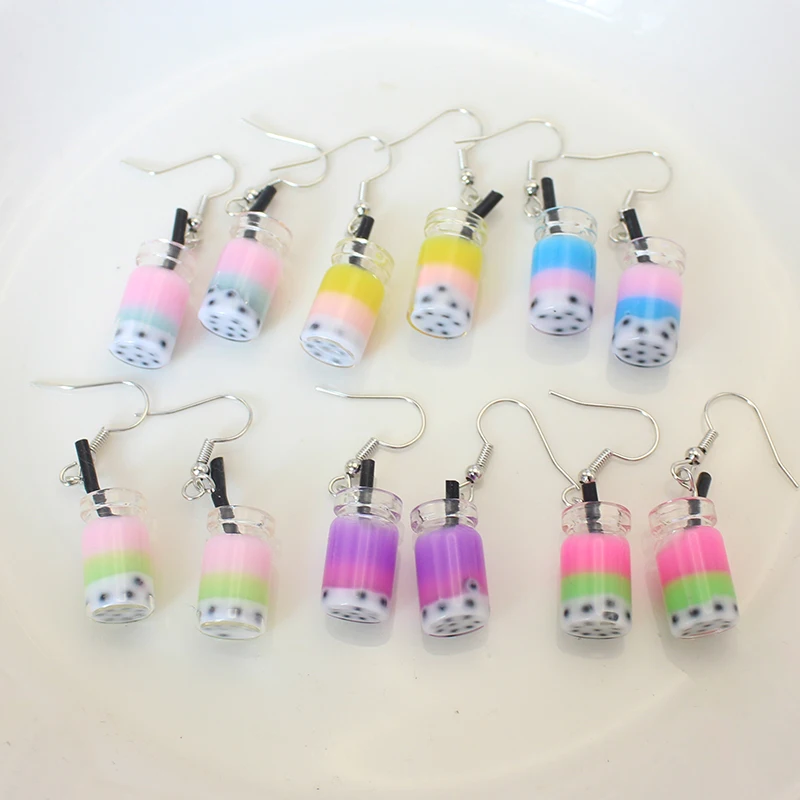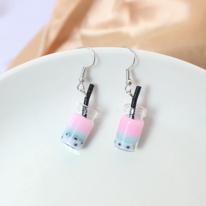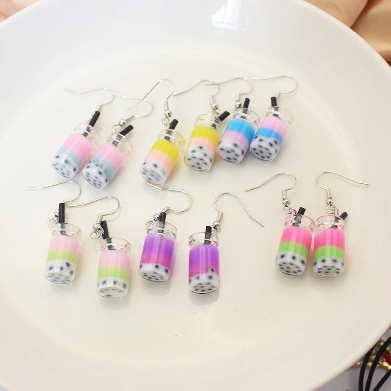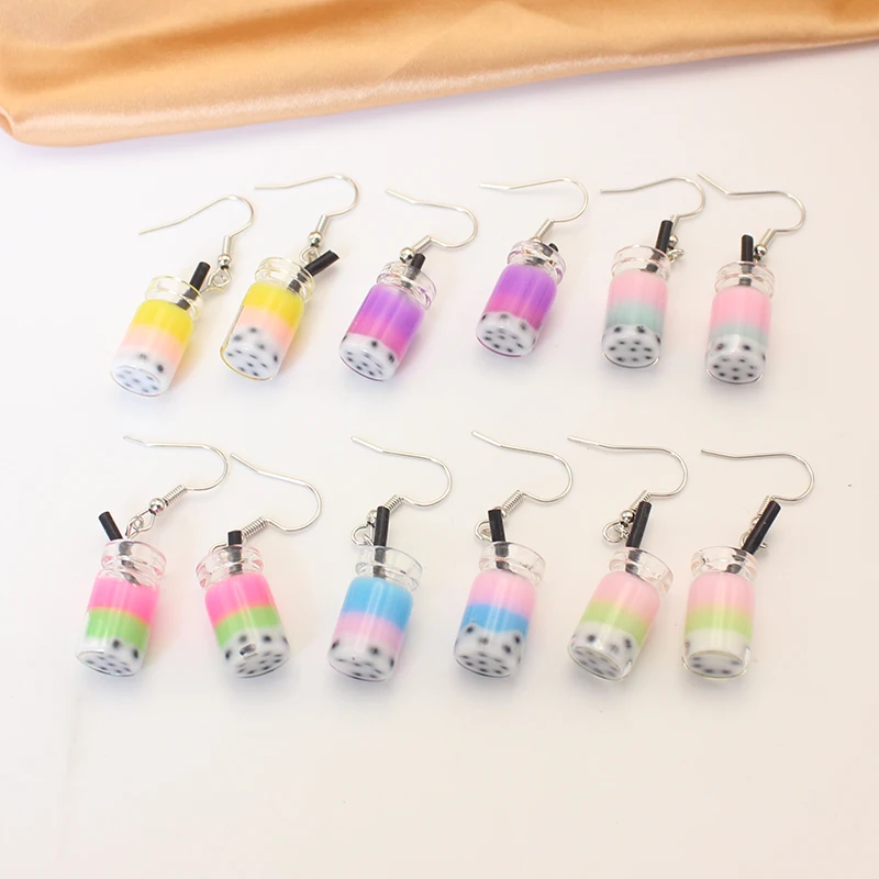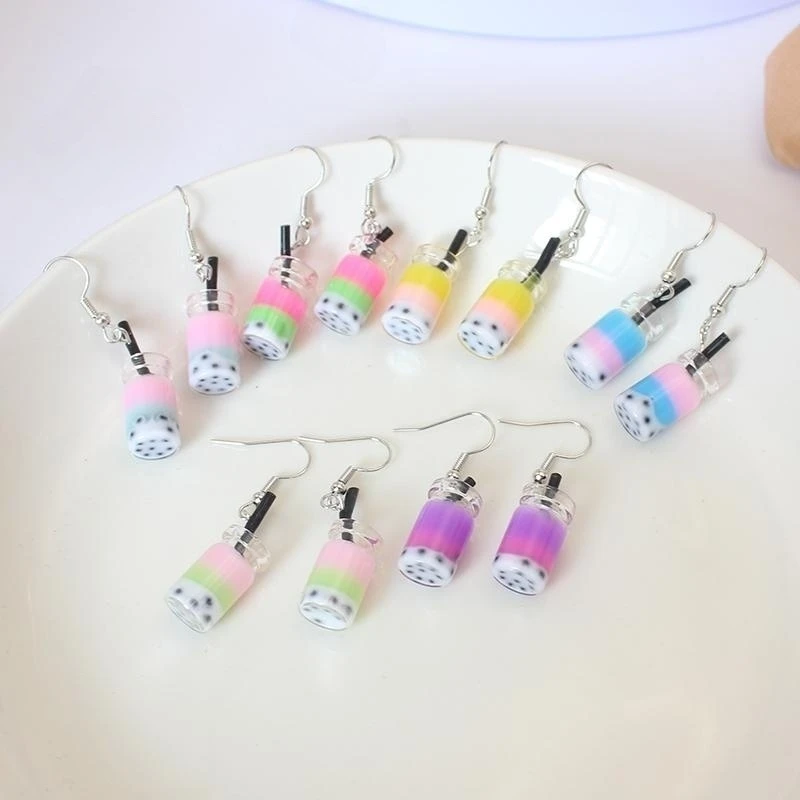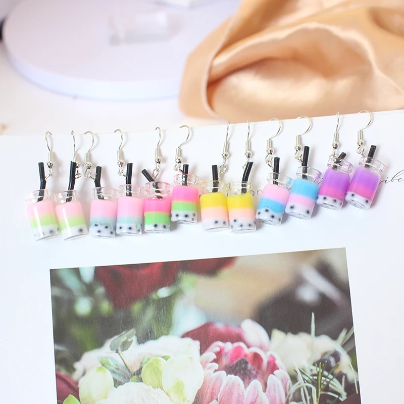Trend Creative Funny Three Layers Colored Bubble Milky Tea Pendant Earrings for Women Personality Drink Ear Jewelry Girl Gift