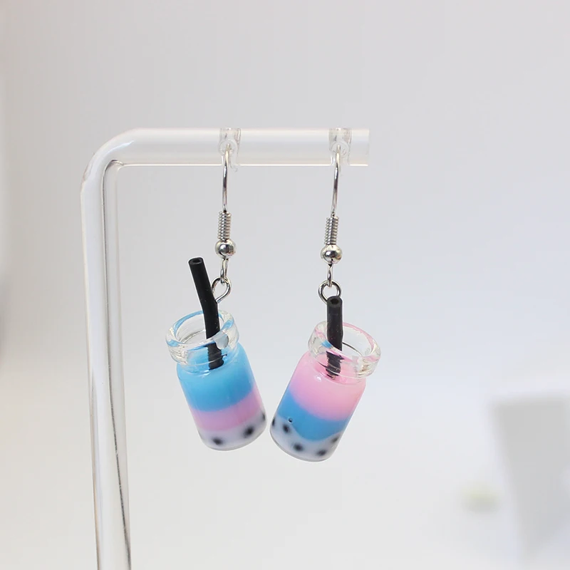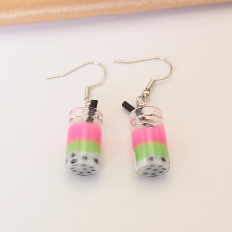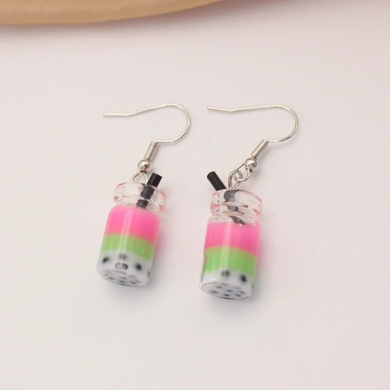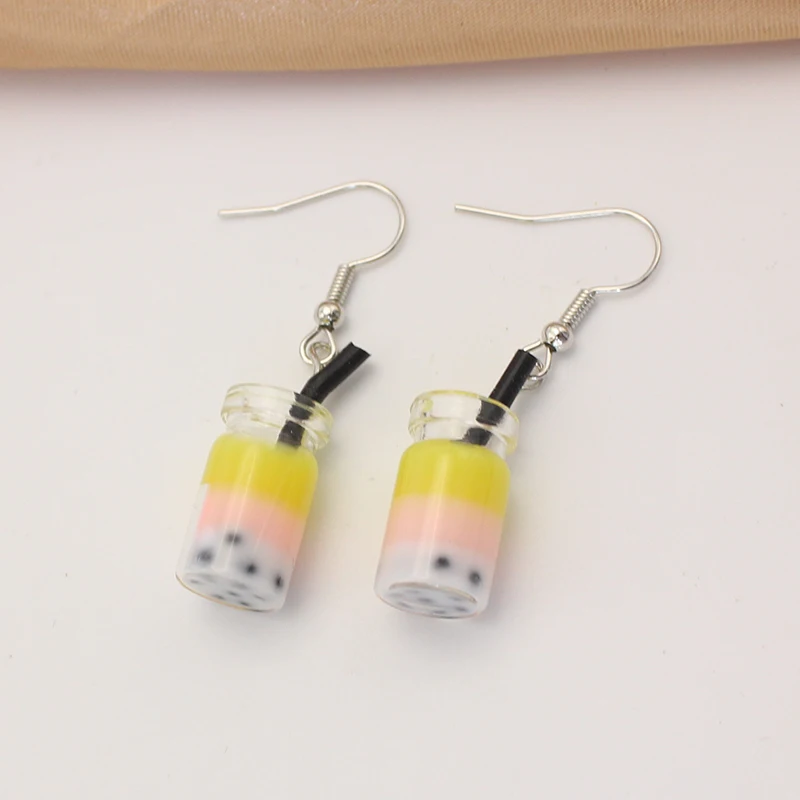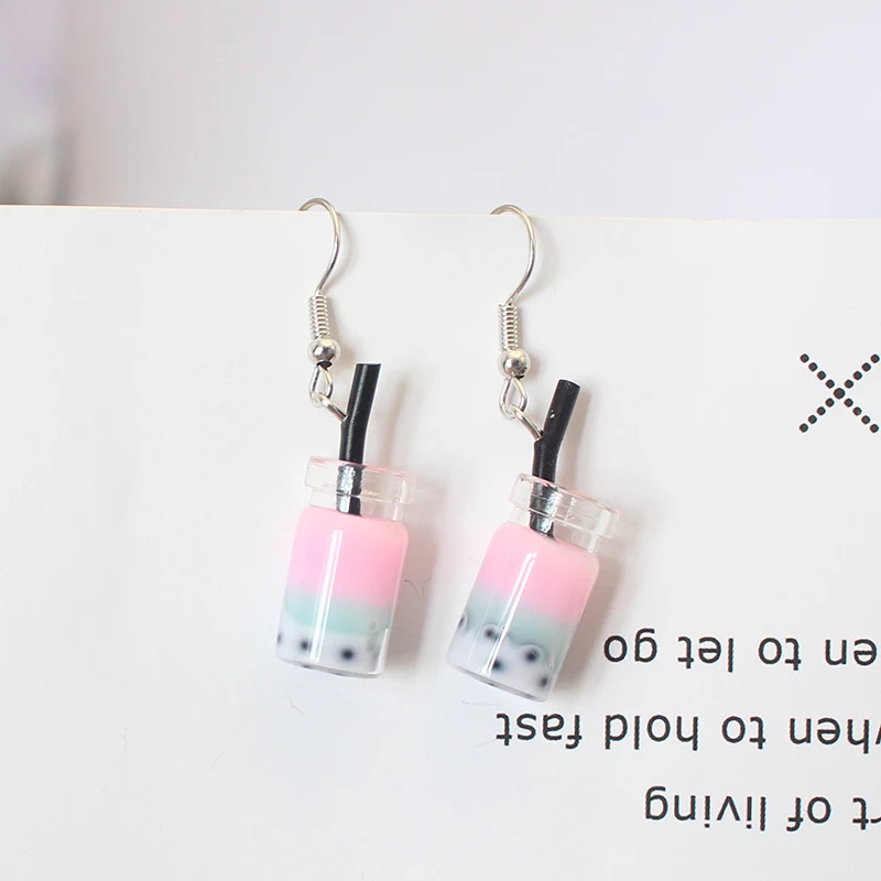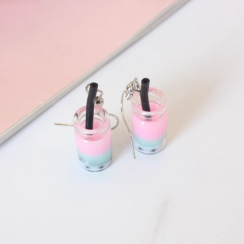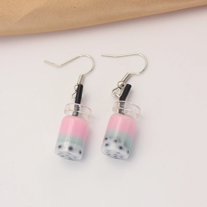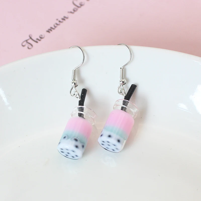 Trend Creative Funny Three Layers Colored Bubble Milky Tea Pendant Earrings for Women Personality Drink Ear Jewelry Girl Gift