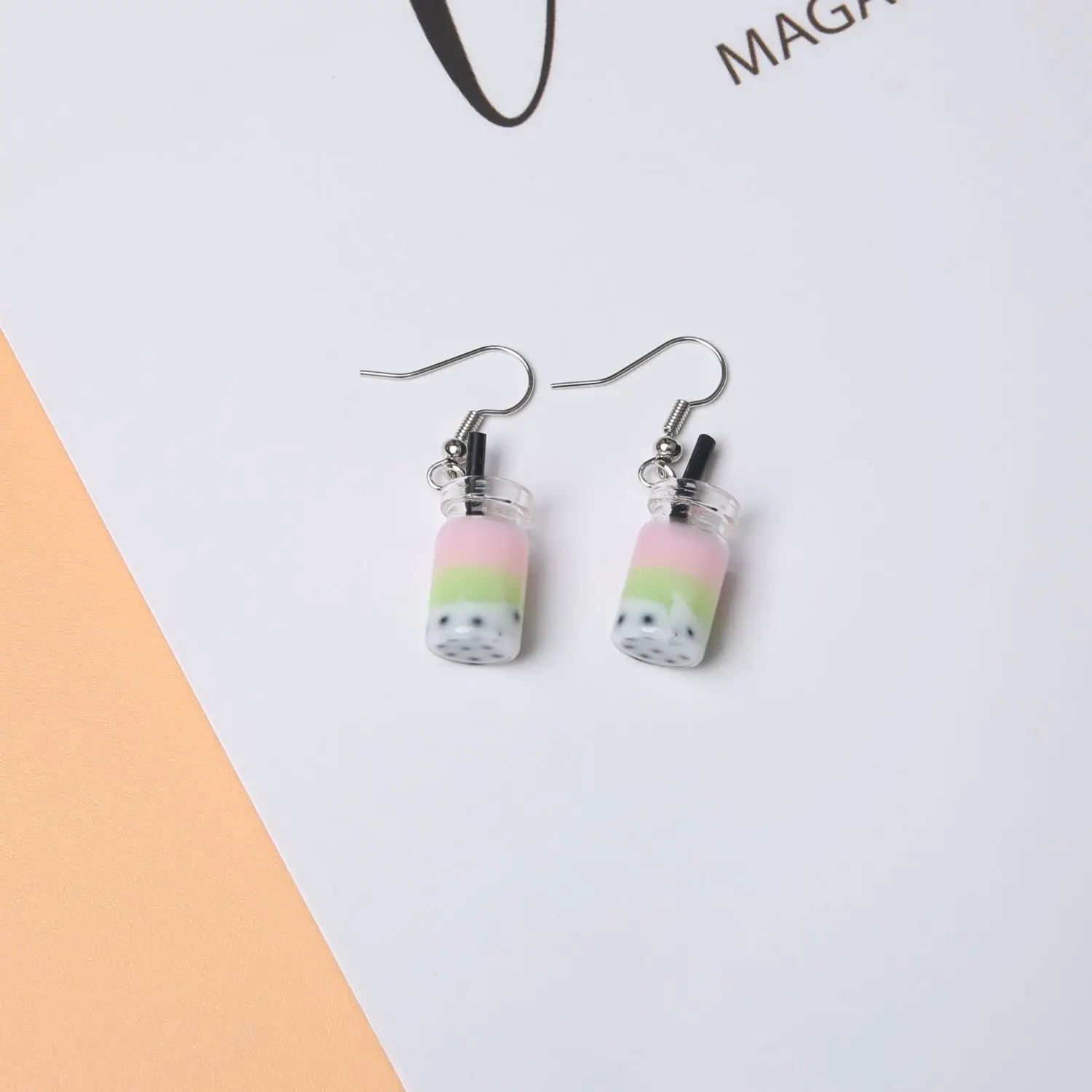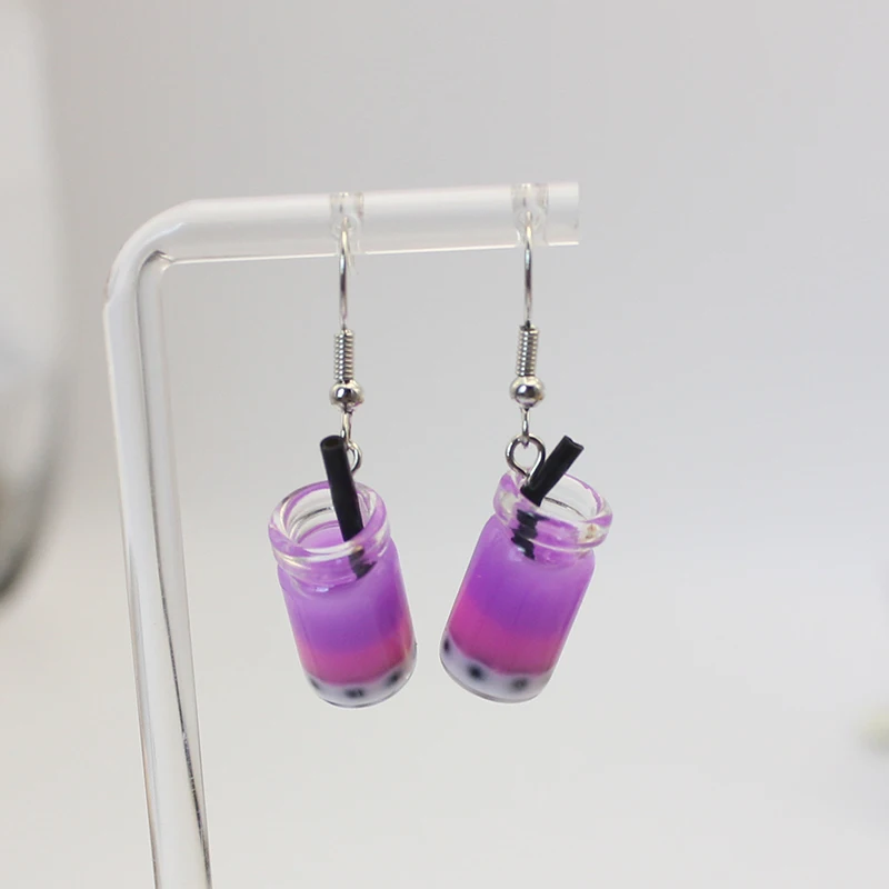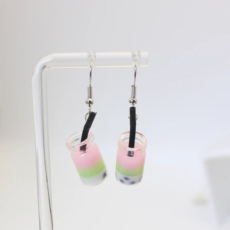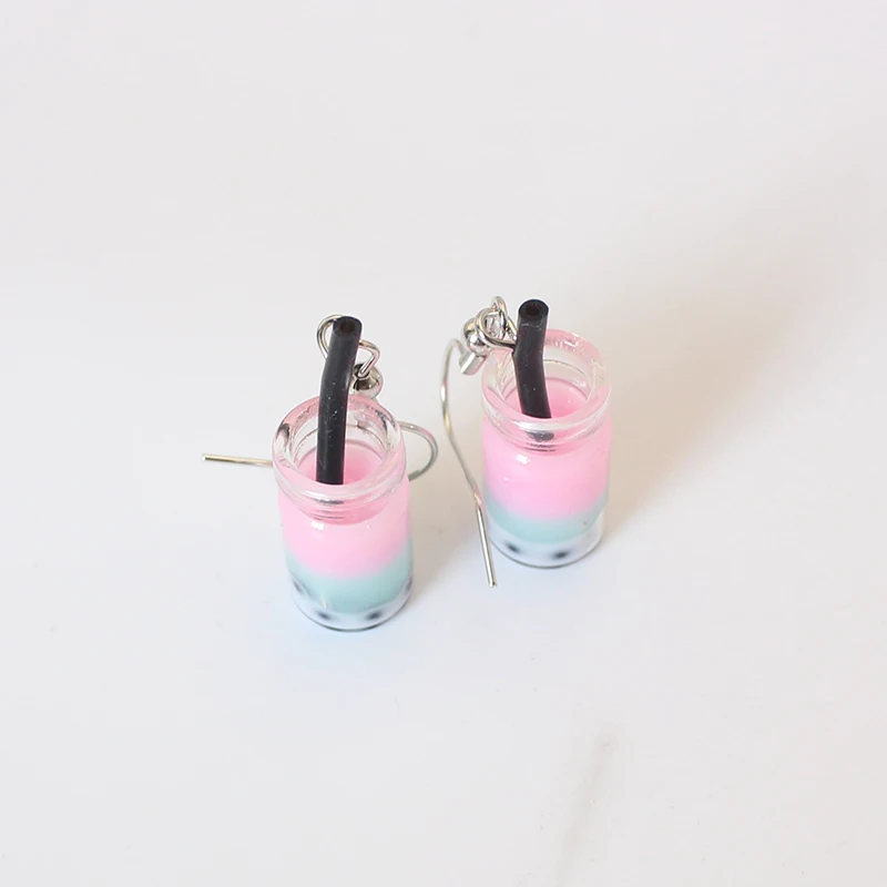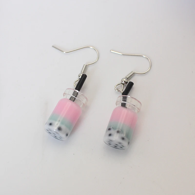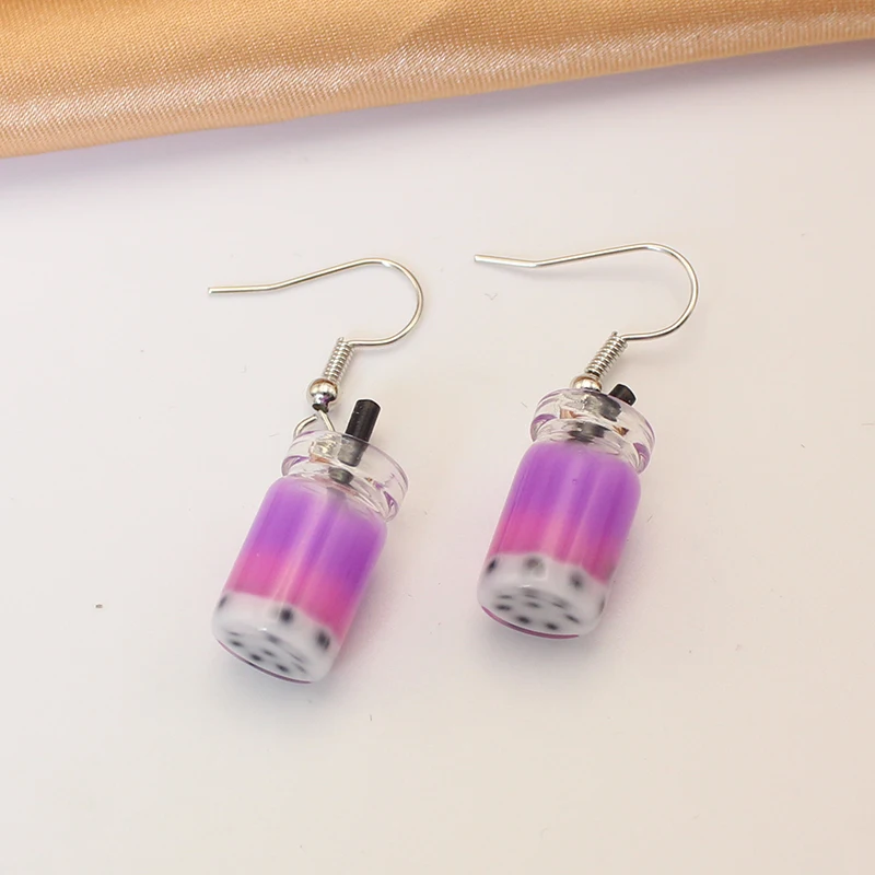 Trend Creative Funny Three Layers Colored Bubble Milky Tea Pendant Earrings for Women Personality Drink Ear Jewelry Girl Gift