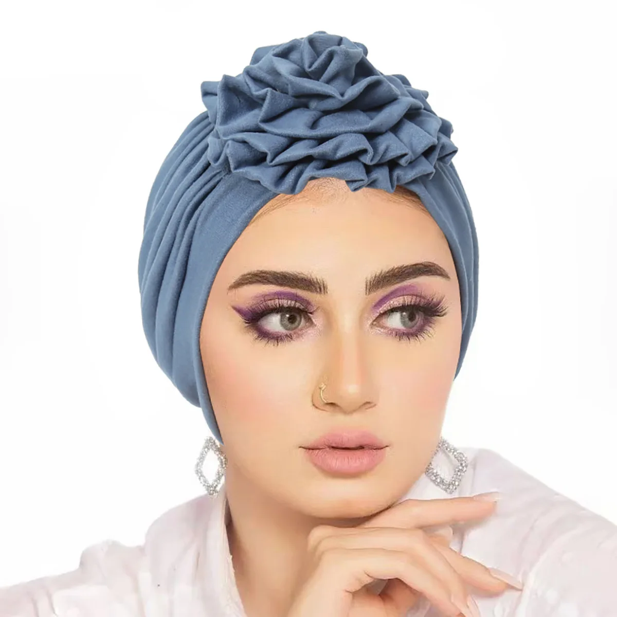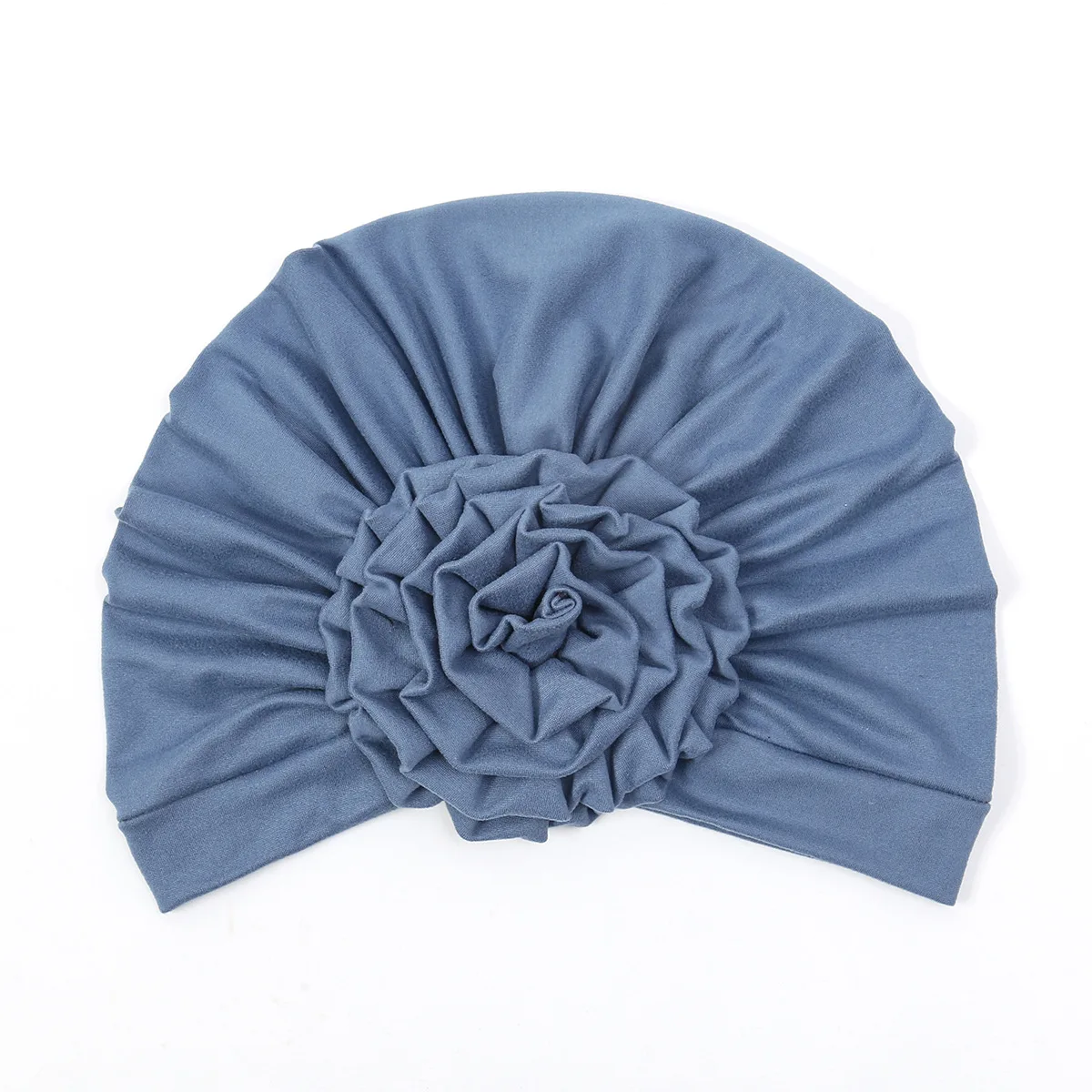 Trendy Crinkle Hijab Solid Color Muslim Ladies Turban Bonnet with Flower Decor for Ramadan and Everyday Wear