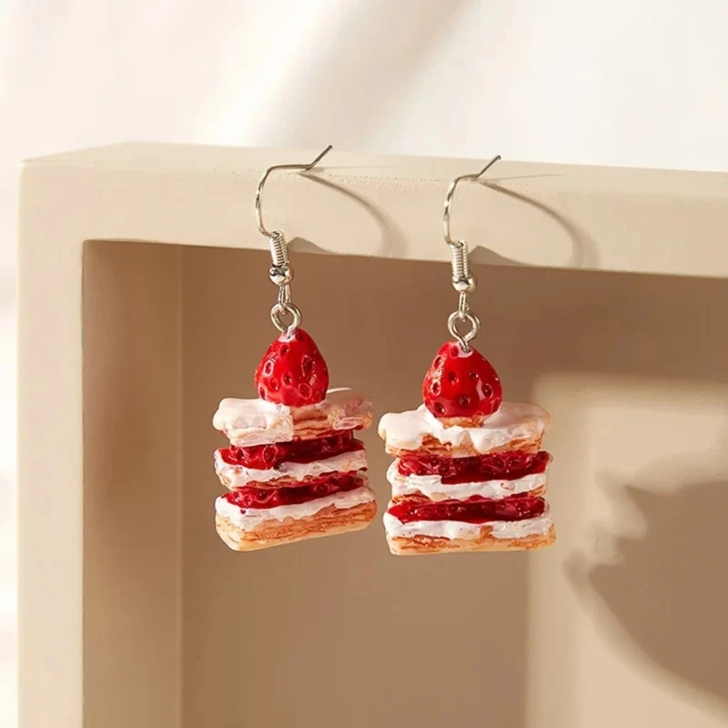 Unique Strawberry Cake Earrings Food Shaped Ear Rings Handcrafted Eardrops Ear Pendants Stylish Accessories for Girls