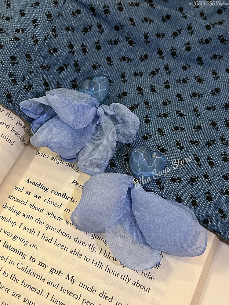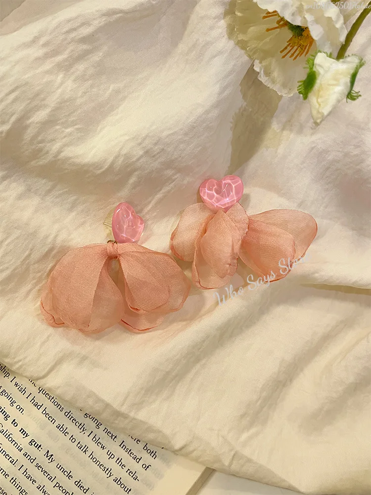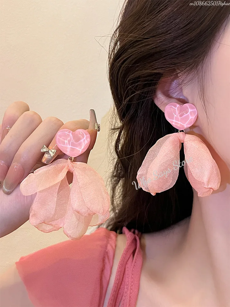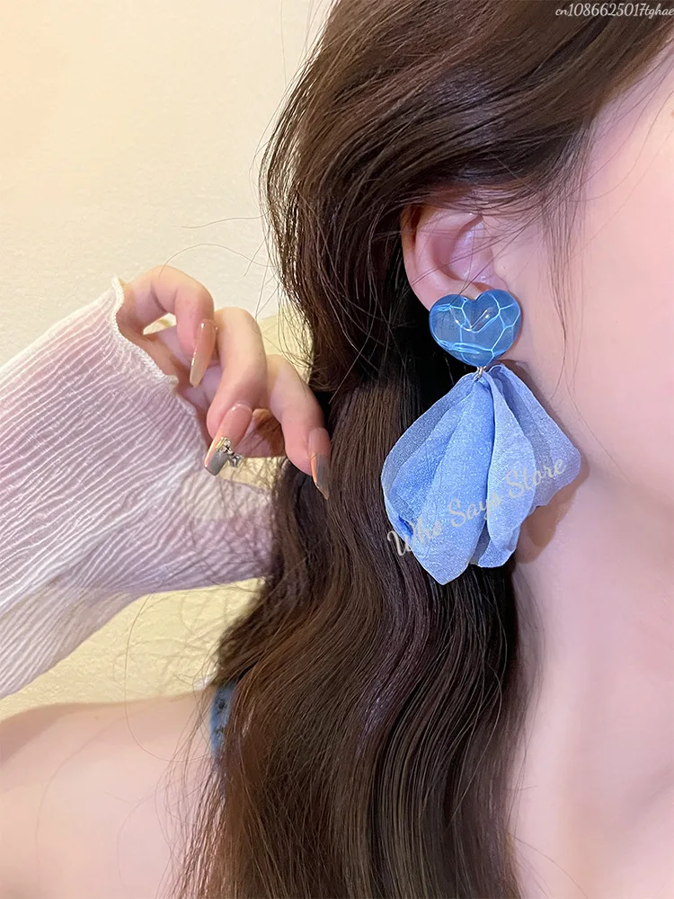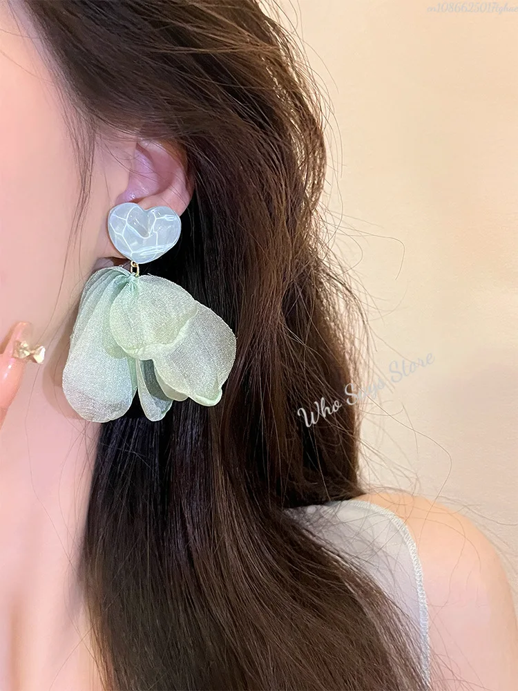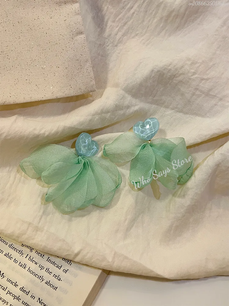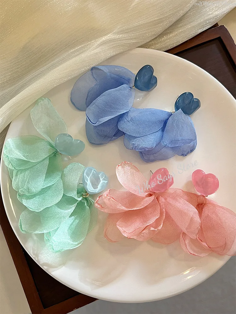 Vacation Style Flower Petal Earrings for Women New High-end Temperament Chiffon Earring Grand Super Fairy Sweet Earrings Серьги