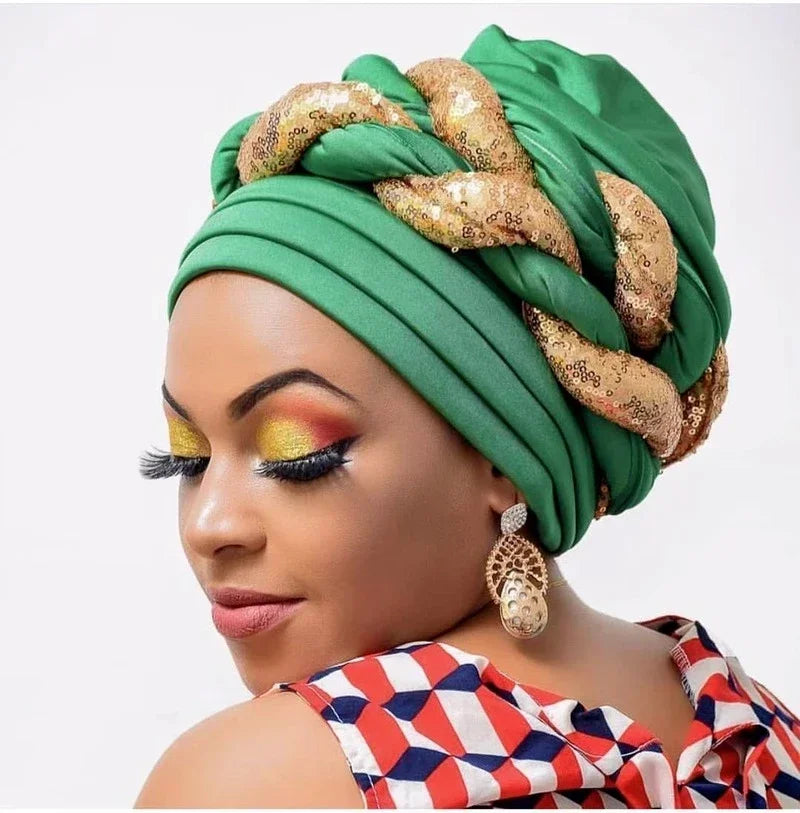 Women Braid Turbans Latest African Headtie Ladies Sequin Head Wraps African Aso Oke Winter Headtie Negerian Wedding Gele Caps