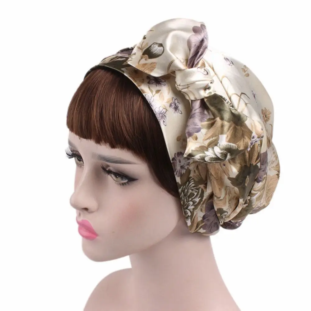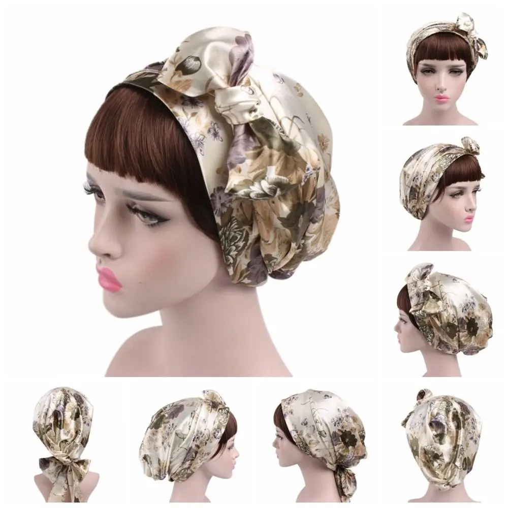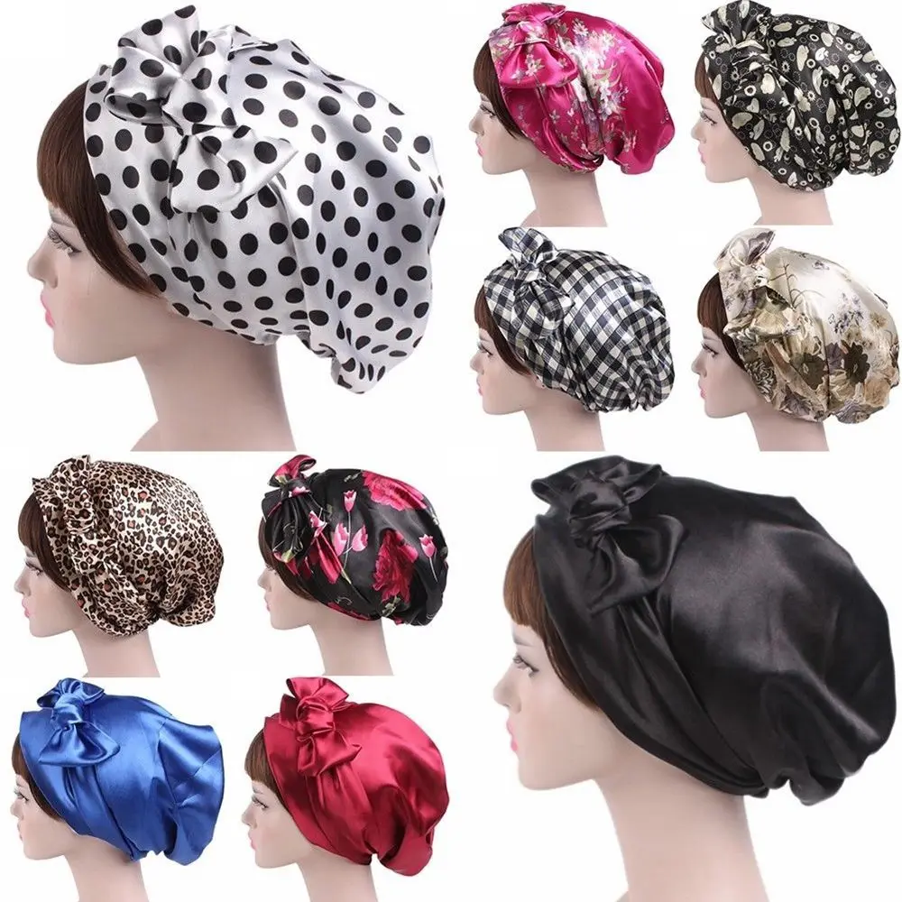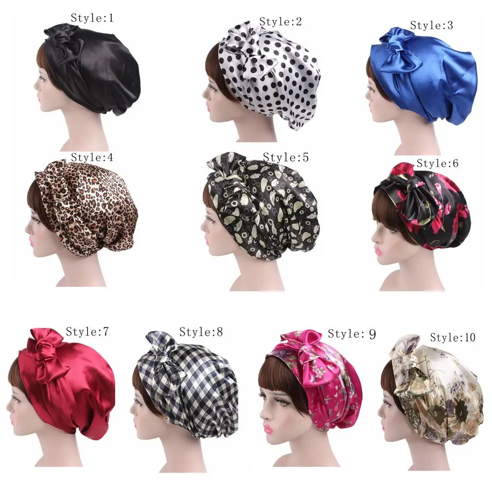 Women Fashion Sleeping Bonnet Cap Soft Pure Silk Sleep Hats Hair Care Wrap Female Night Cap 10 kinds of color