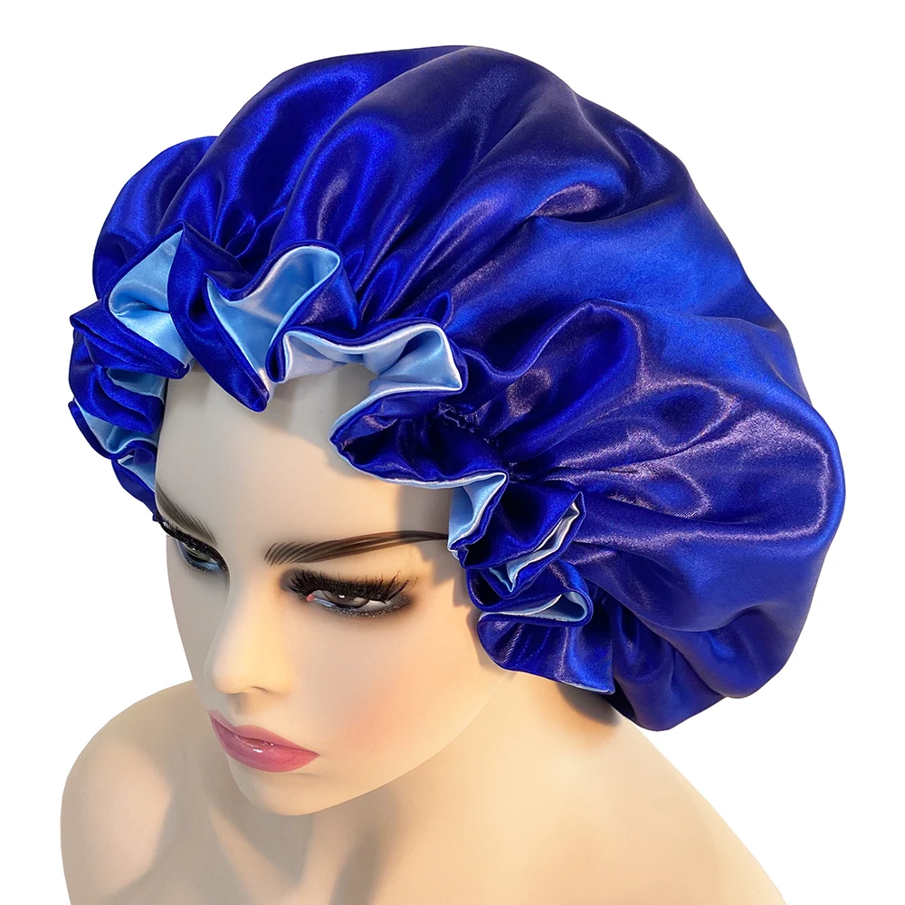 Women Satin Bonnet Fashion Double Layer Silky Big Bonnet for Lady Sleep Cap Head Wrap Hair Styling Accessories