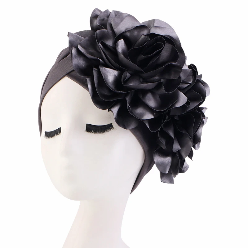 Women's Head Wraps Wedding Party Headpiece Muslim Headscarf Hat India Caps Exaggerated Big Flower African Turban Cap
