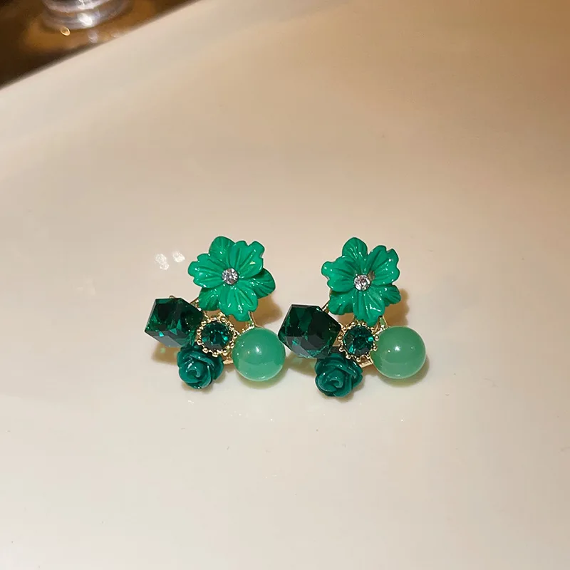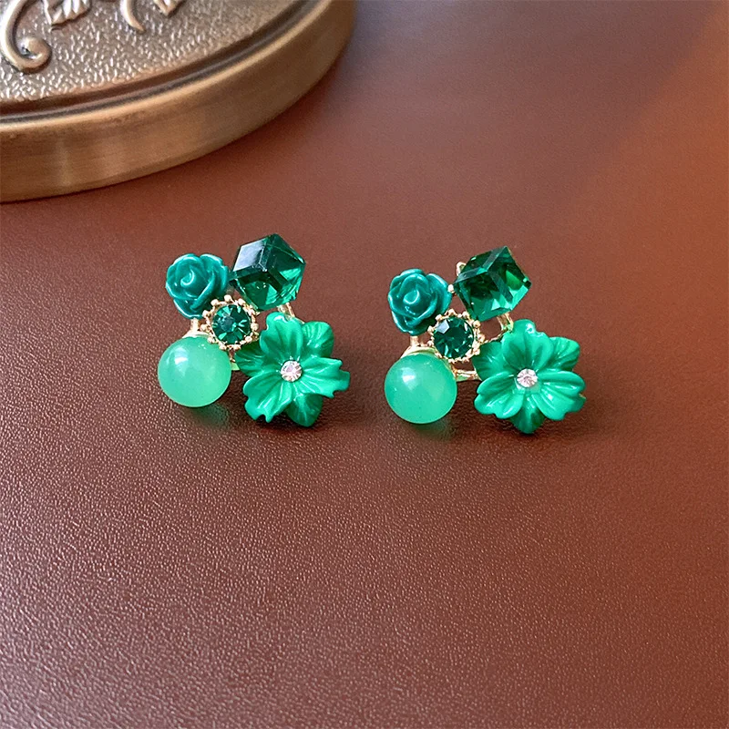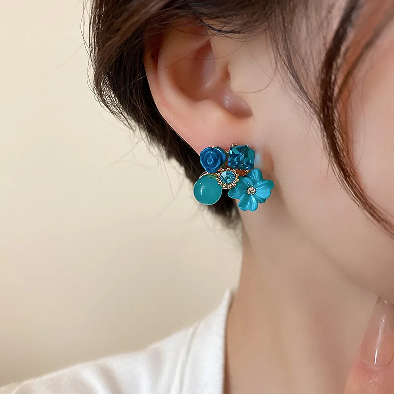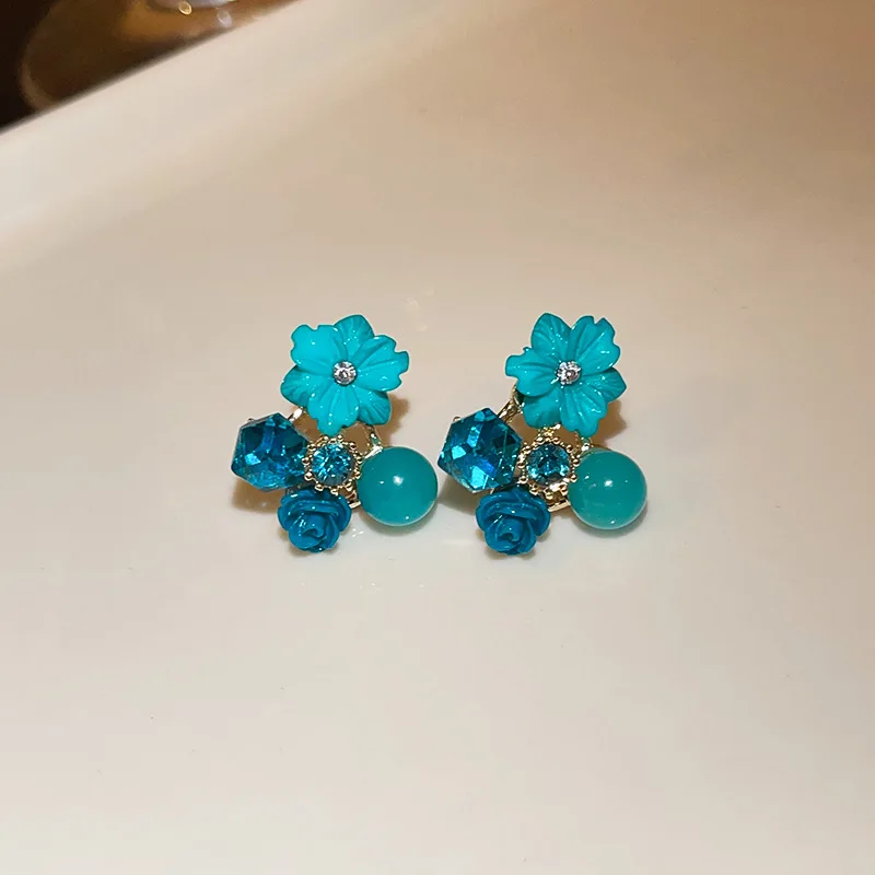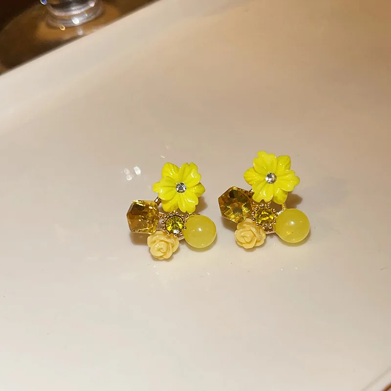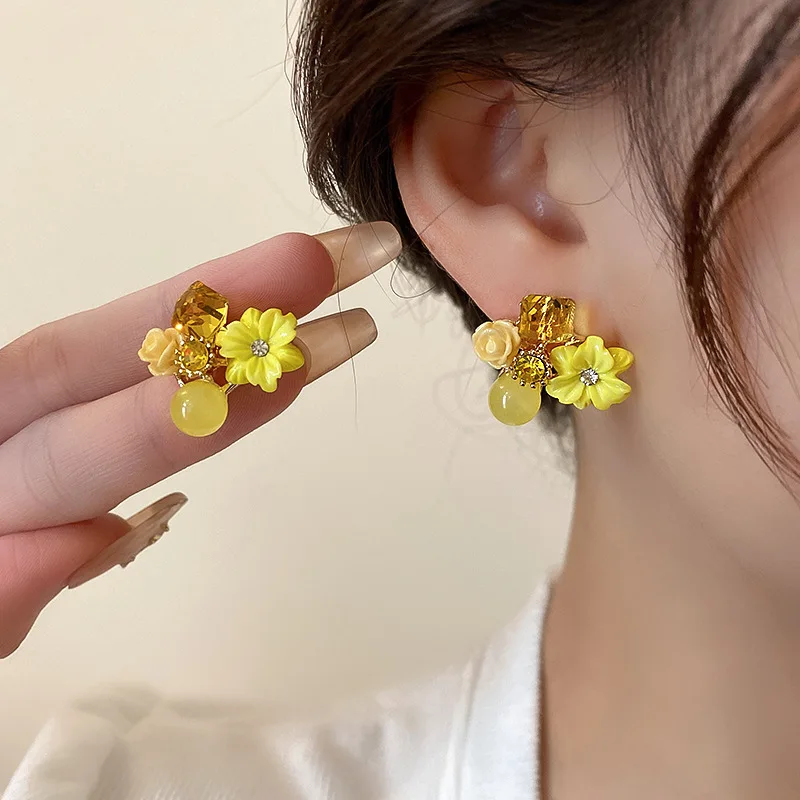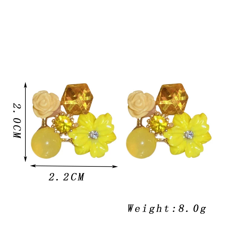 Yellow Purple Green Blue Flower Stud Earrings for Women Korean Fashion Acrylic Rhinestones Crystal Party Ear Jewelry Girls Gift