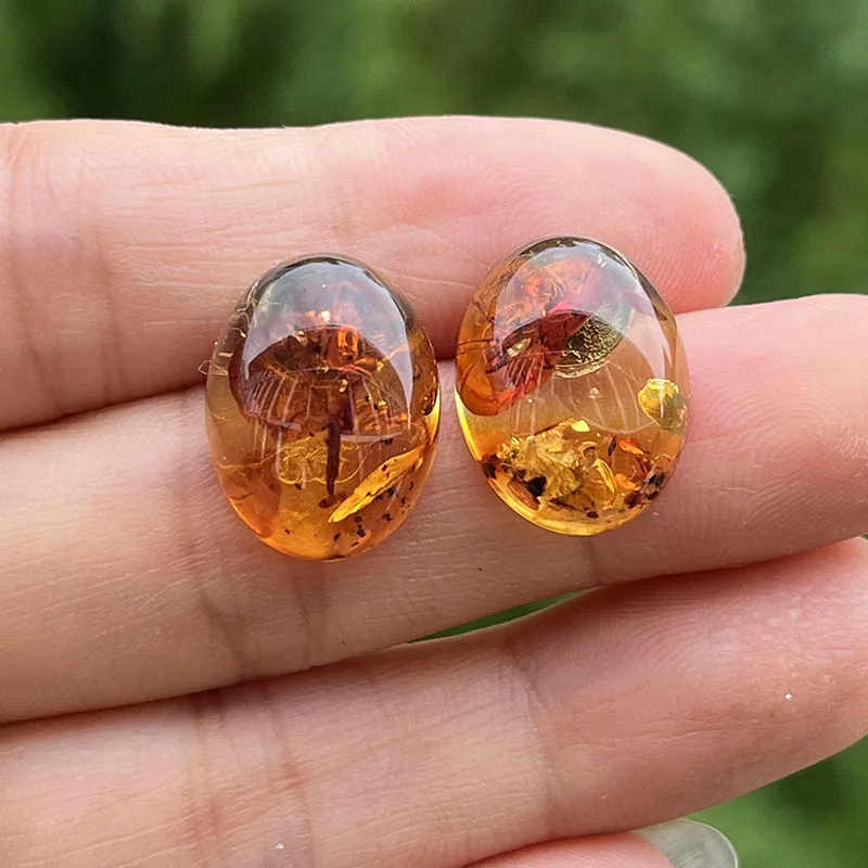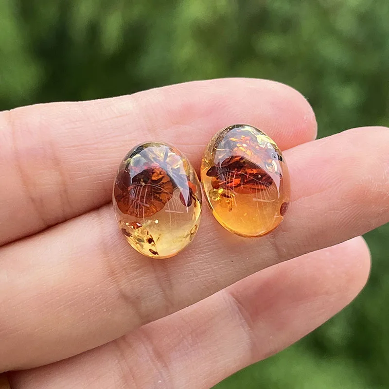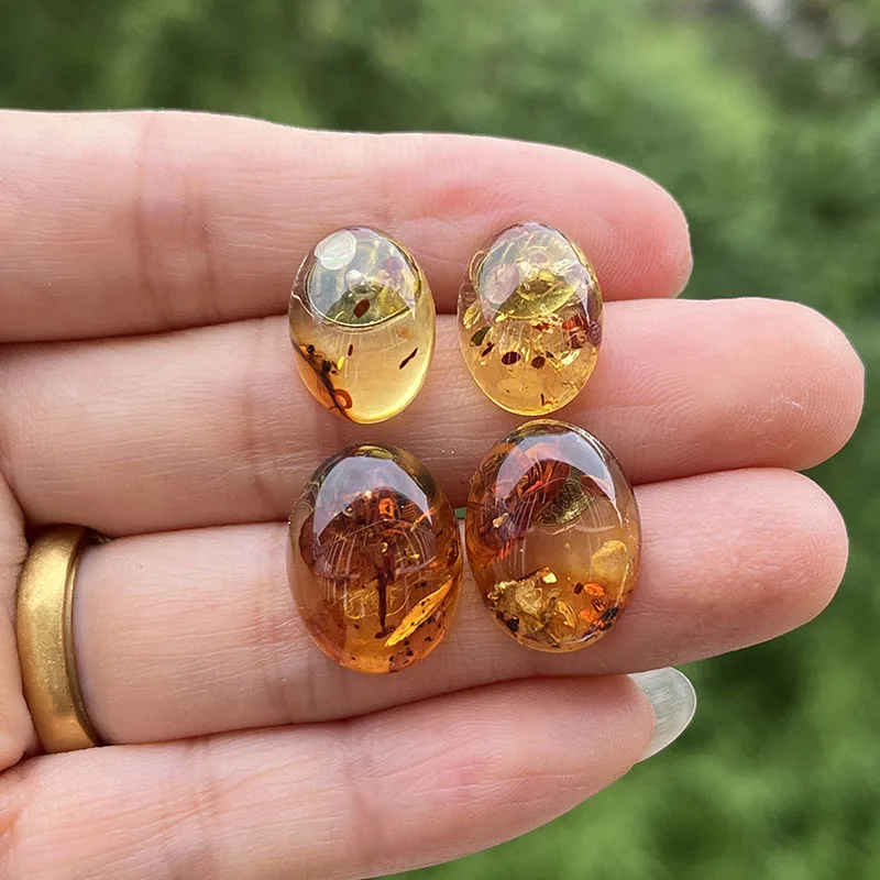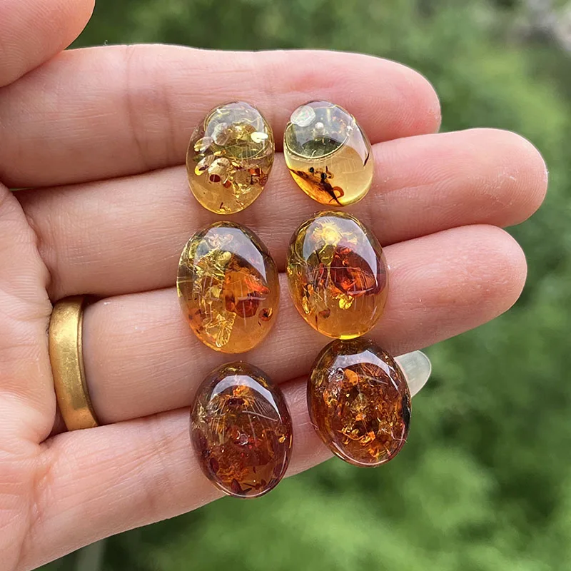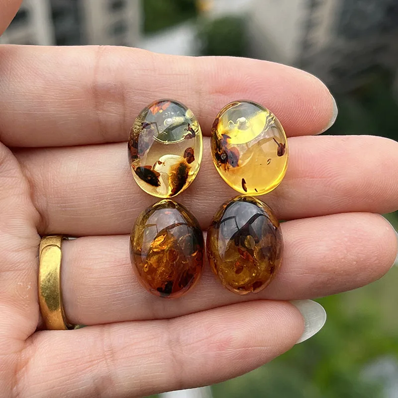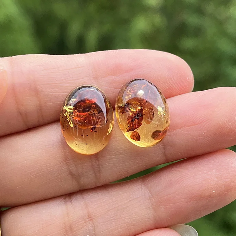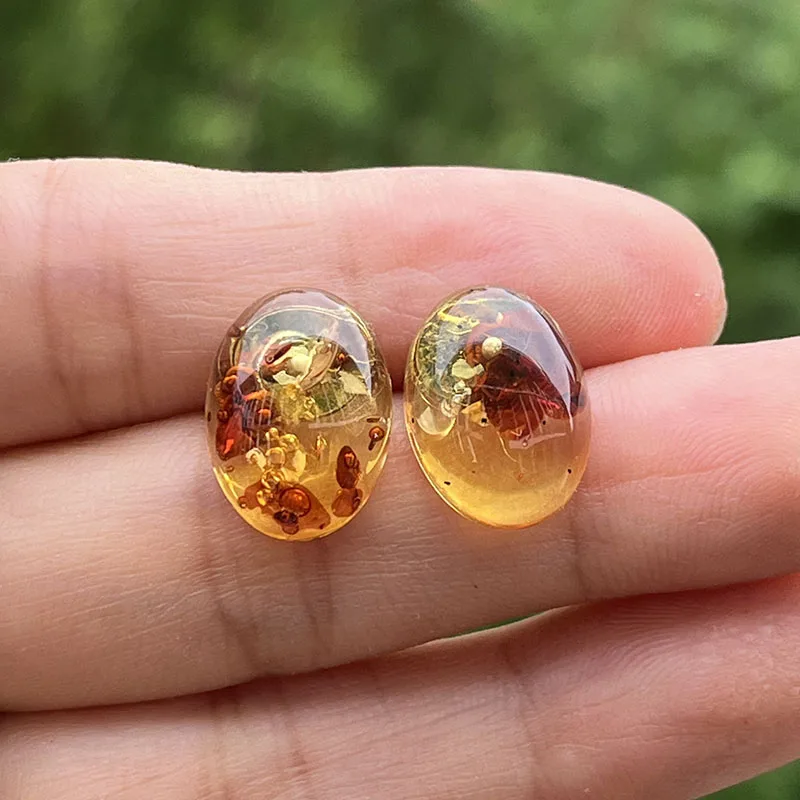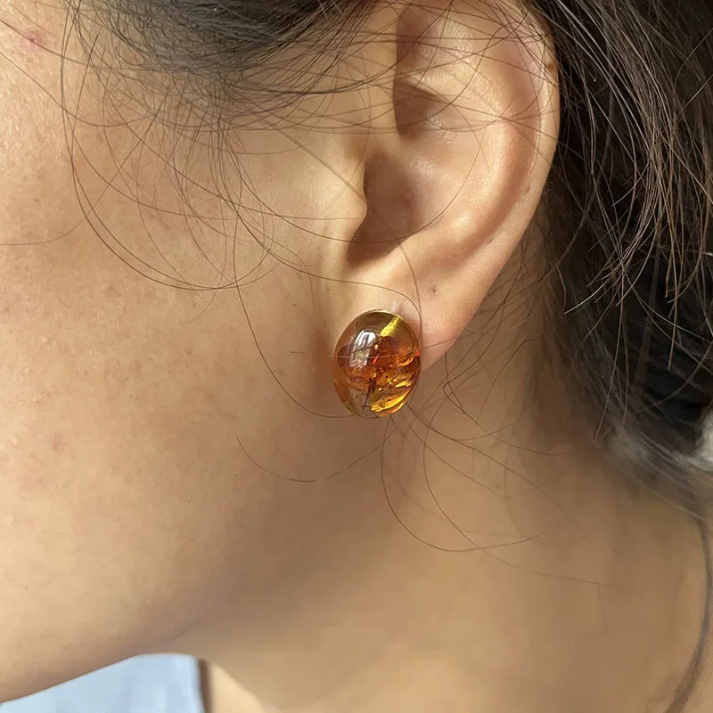【Title】Yoowei Oval Natural Amber Earrings for Women Chic Stud Earring Lady Fashion Baltic flower Amber Jewelry Wholesale